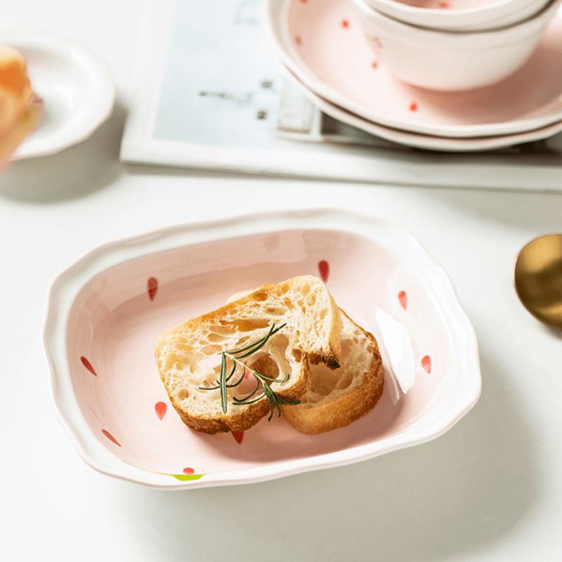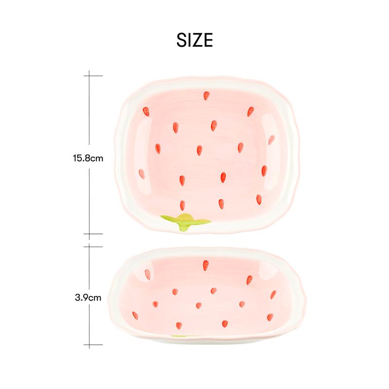 KAWASIMAYA Strawberry Series Rectangular Ceramic Wave Plate Cute 7.5 Inch Dinnerware