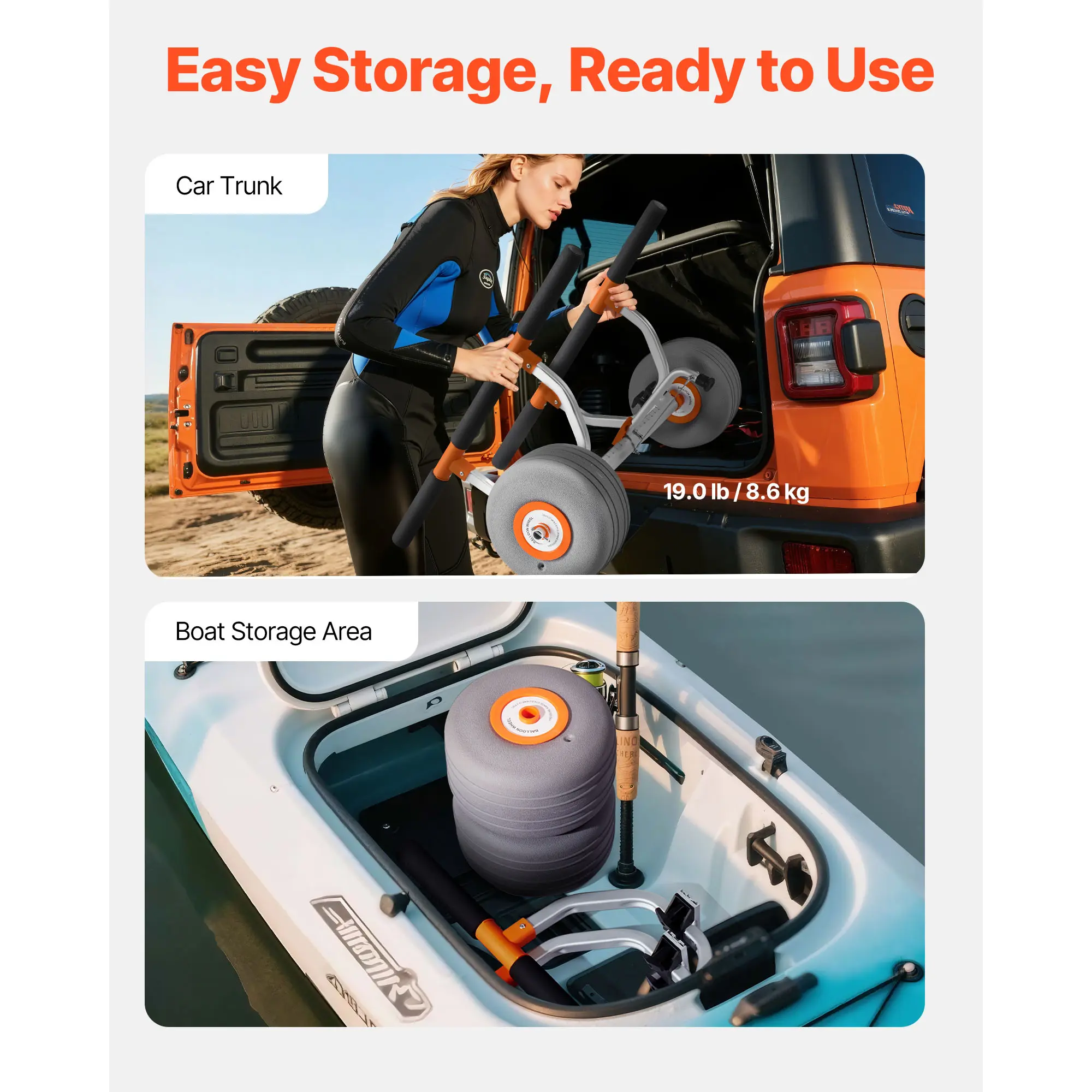 • Universal Compatibility: Adjustable 6.7-17.3 inch support bracket accommodates different boat sizes, fitting paddleboards, canoes, float mats, kayaks, and flat-bottom boats. Our kayak dolly ensures versatility for users
