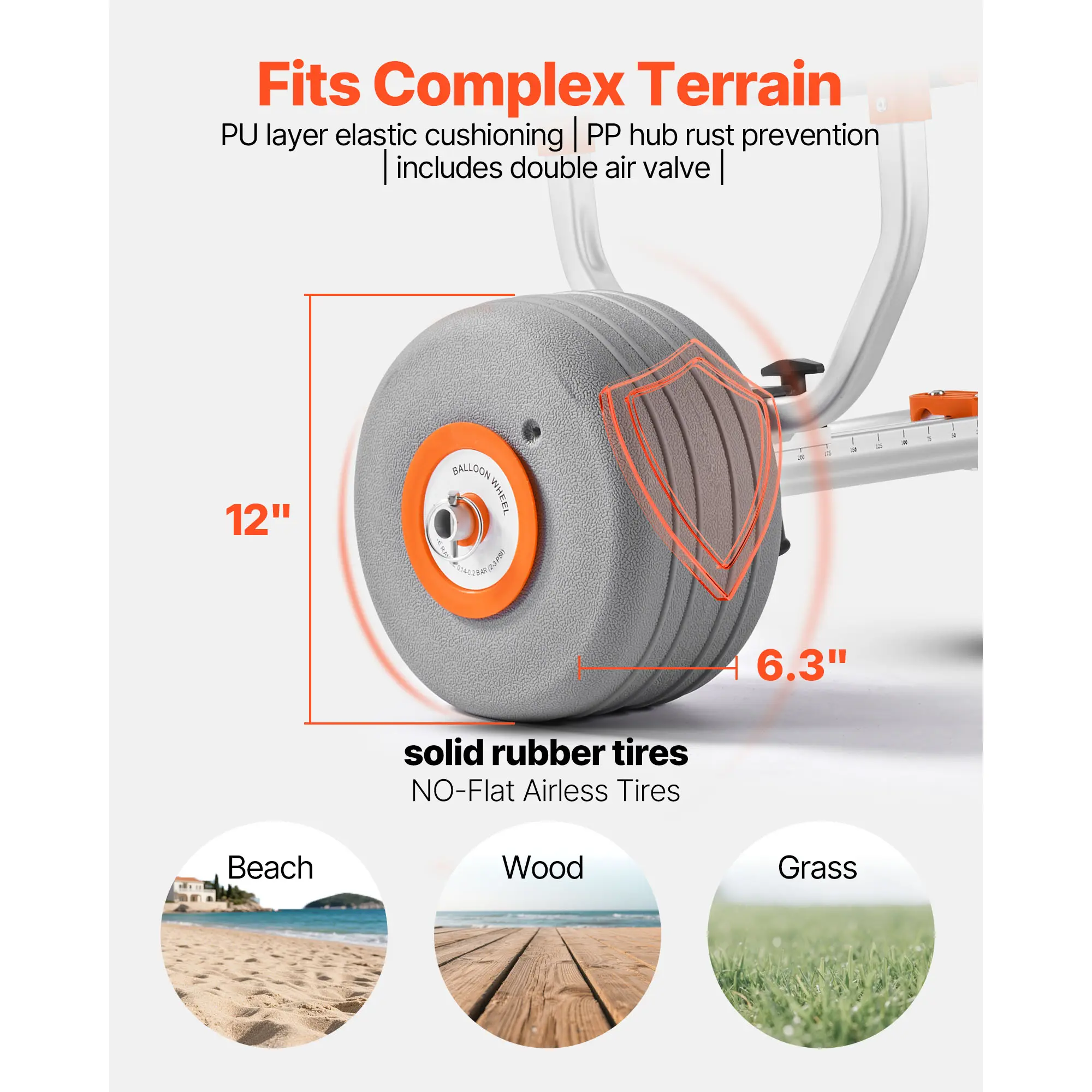 • Smooth Ride: Equipped with 12-inch inflatable PU wheels and 6.3-inch wide tires, this kayak roller cart easily glides over sand, boardwalk docks, and grass. Also, comes with dual air nozzles for easy use