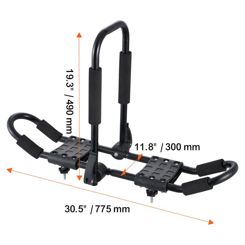 • Strong & Heavy Duty: Our racks are made of high-strength thick alloy steel and high-quality plastic, one set of racks can withstand a dynamic load of 150 lbs / 68.0 kg, easily load two kayaks without warping or damage. In addition, our racks are added with rust-resistant coating for a long service life in the wind and rain. Note: Please check your car's roof and crossbar rack's carrying capacity when using it to avoid crushing the roof.