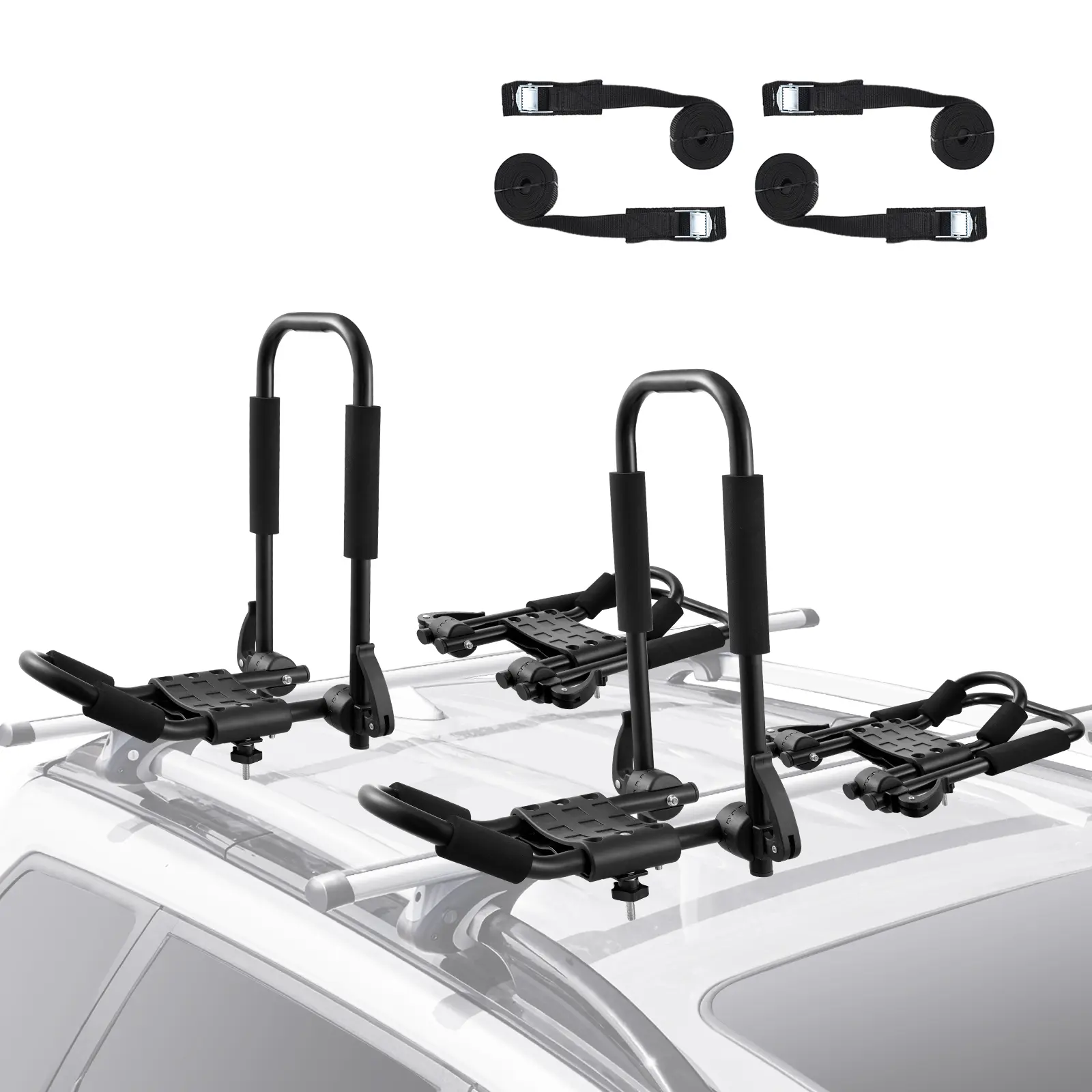 • Convenient Multiple Carrier Function: This set of roof kayak carrier can be put into kayak on one side.4 pieces carrier is easy to transport one or two kayaks, adjust the use space at any time, let you enjoy your vacation more conveniently and easily.4 pieces carrier is easy to transport one or two kayaks and adjust the use space at any time.