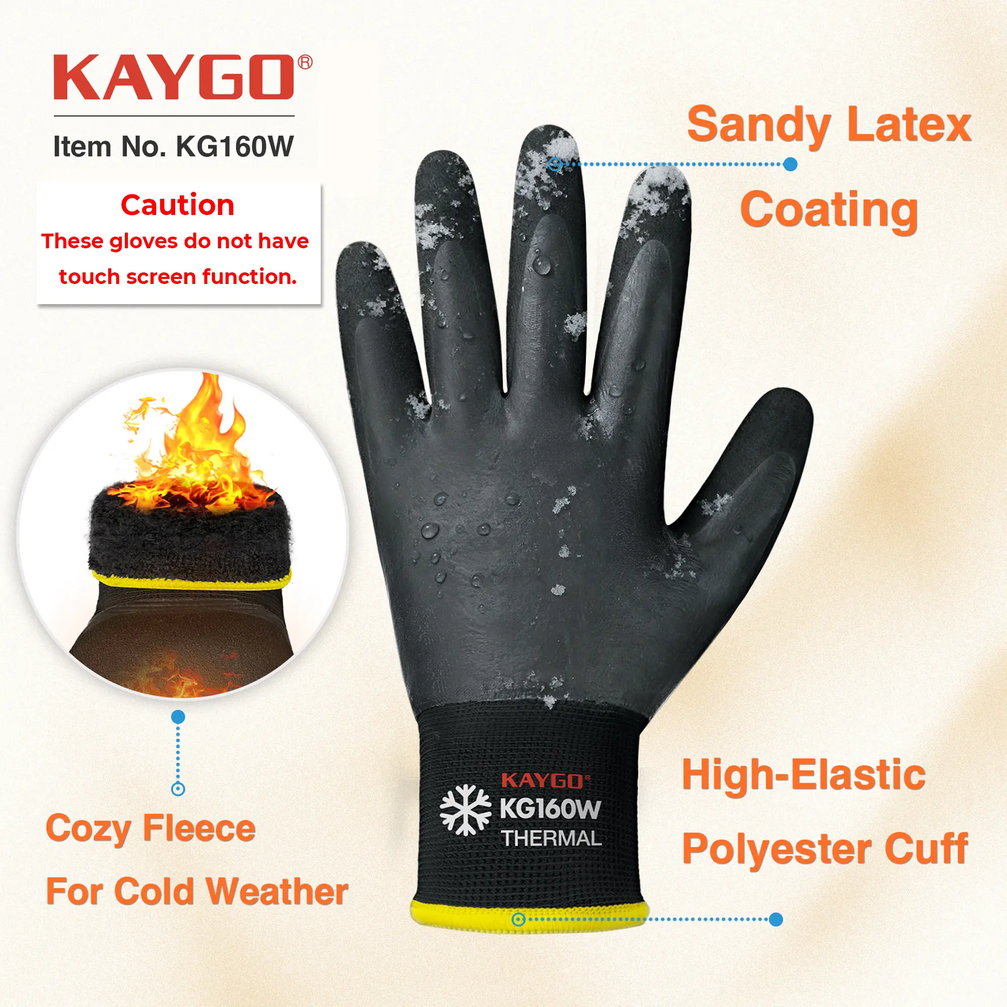 The KG160 is a winter-ready, waterproof work glove suitable for cold weather between 0°C~-5°C , designed to provide comprehensive protection, warmth, flexibility, and durability. Whether handling packages in the rain, shoveling snow, camping outdoors, or driving on cold mornings, it keeps your hands dry, warm, and comfortable. The KG160 is an ideal choice for warehouse workers, delivery drivers, construction workers, and anyone who needs reliable hand protection in cold weather, making it a versatile must-have glove for everyday winter tasks. However, please note that this glove is not waterproof at the wrist and does not have touchscreen functionality.