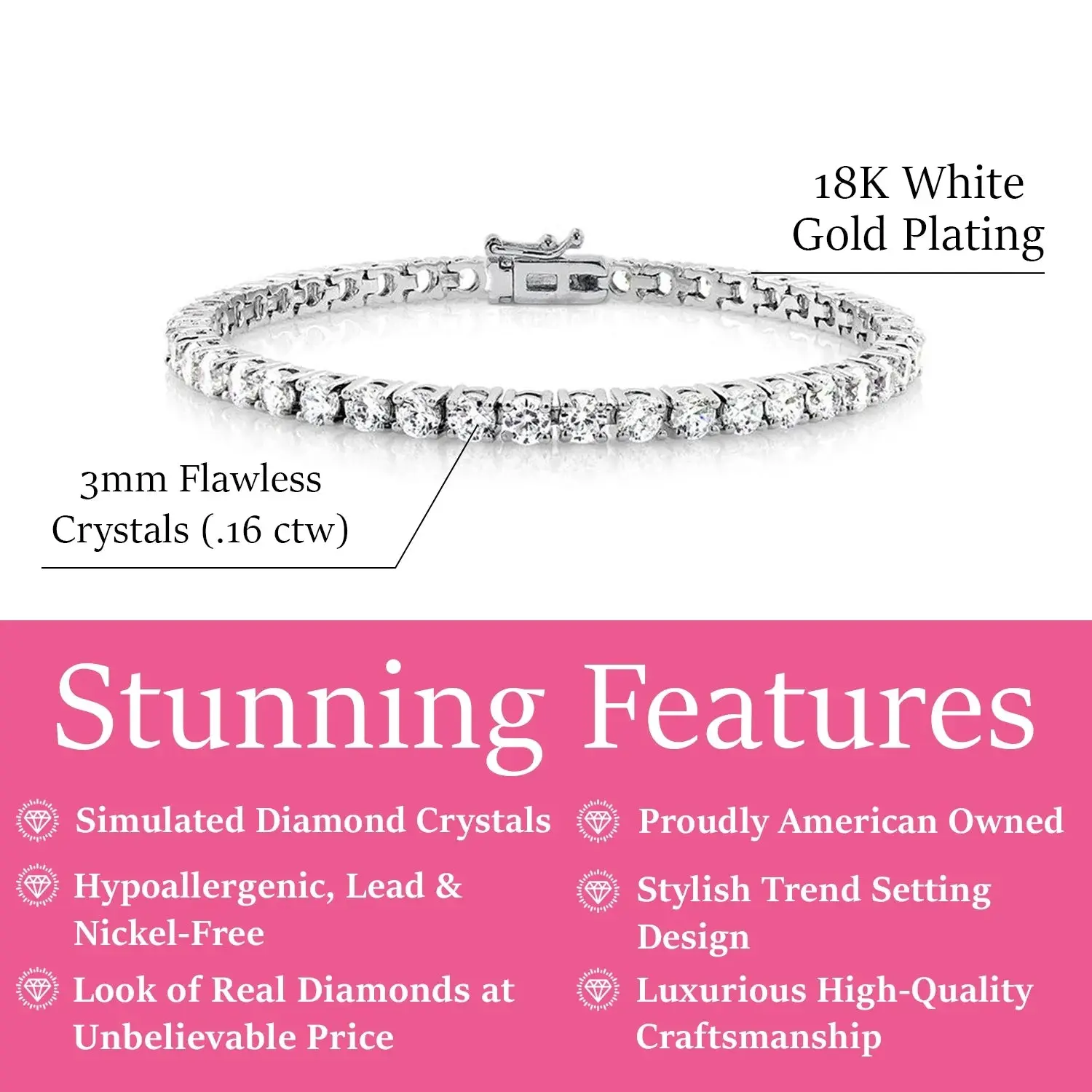 Kaylee 18k White Gold Plated Tennis Bracelet with Simulated Diamond Crystals
