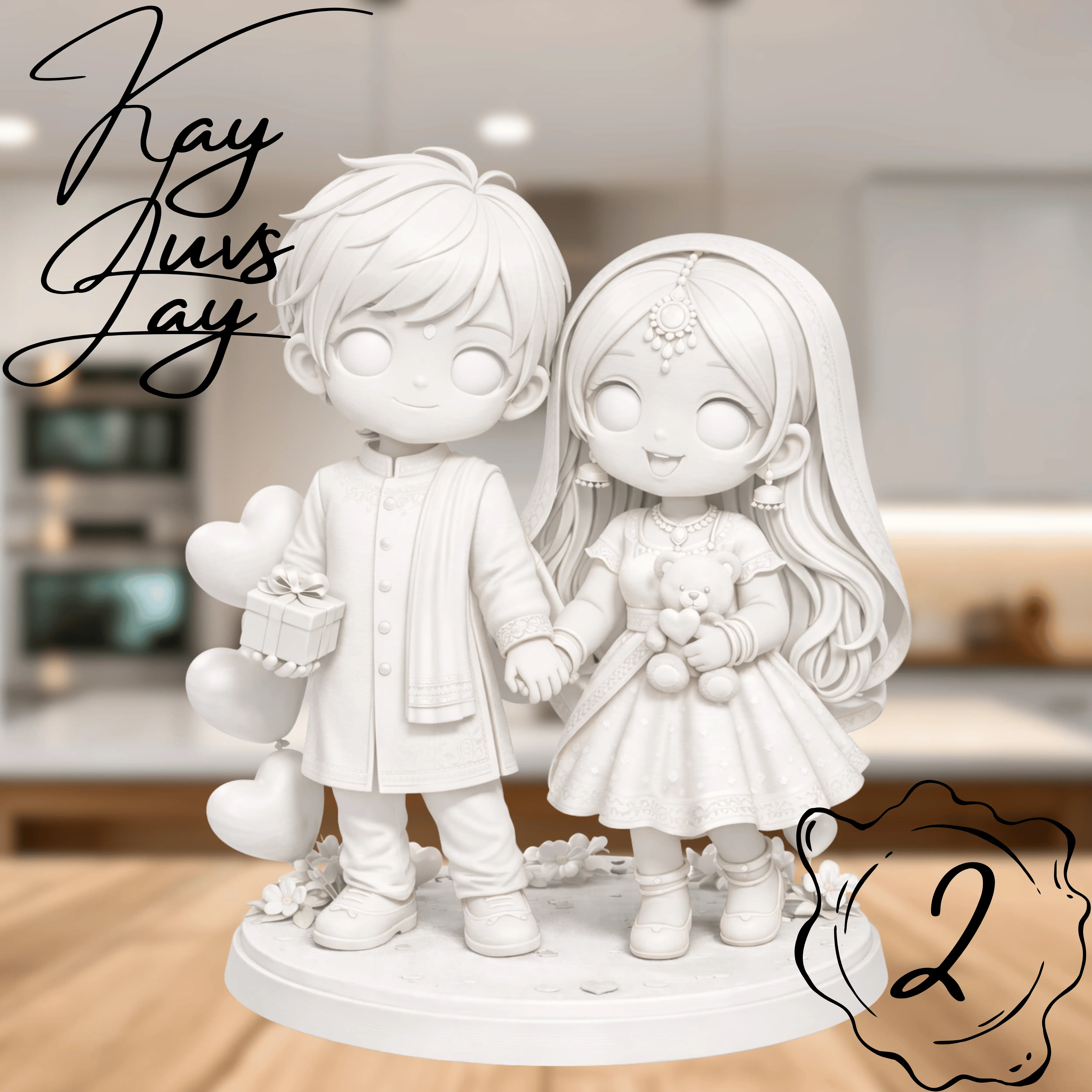 Each couple is 3D printed to order and shipped in a solid white, unpainted finish so you can paint, decorate, or personalize it to match your own love story. Whether you’re gifting for Valentine’s Day, anniversaries, weddings, or just because, this piece makes a meaningful and creative keepsake.