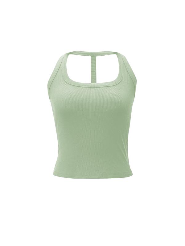 Backless Sleeveless Sports Bra Tank Top, Cross-Back Design, Comfortable Casual Wear, Daily Date, Slim-Fitting Short Style