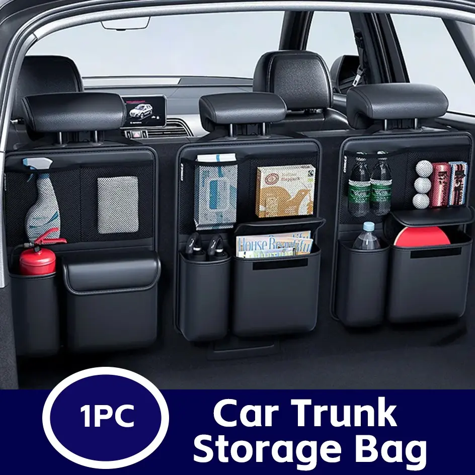 Kcimo Foldable PU Leather Car Trunk Organizer Bag, Multi-Functional Tool Storage Holder, Suv Rear Seat Hanging Design, Car Trunk Organiser