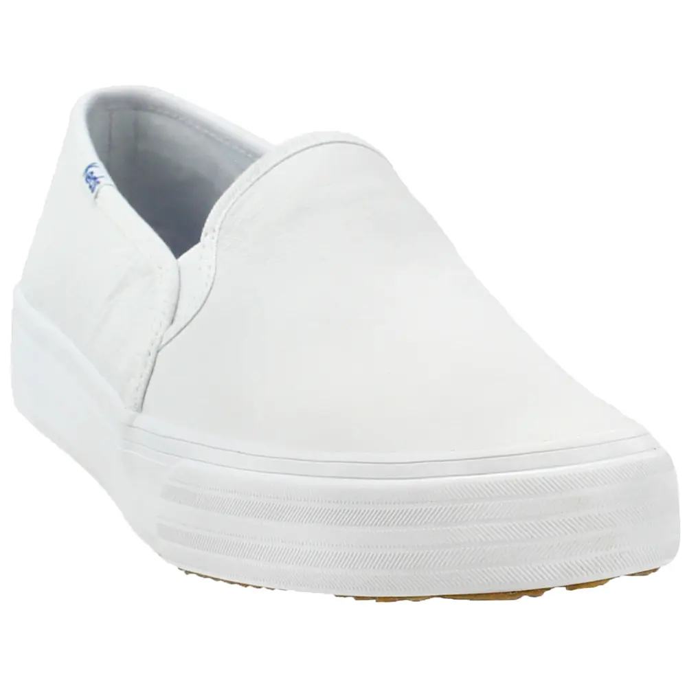 5. Keds Womens Double Decker Leather Slip On Sneakers Shoes Casual - White