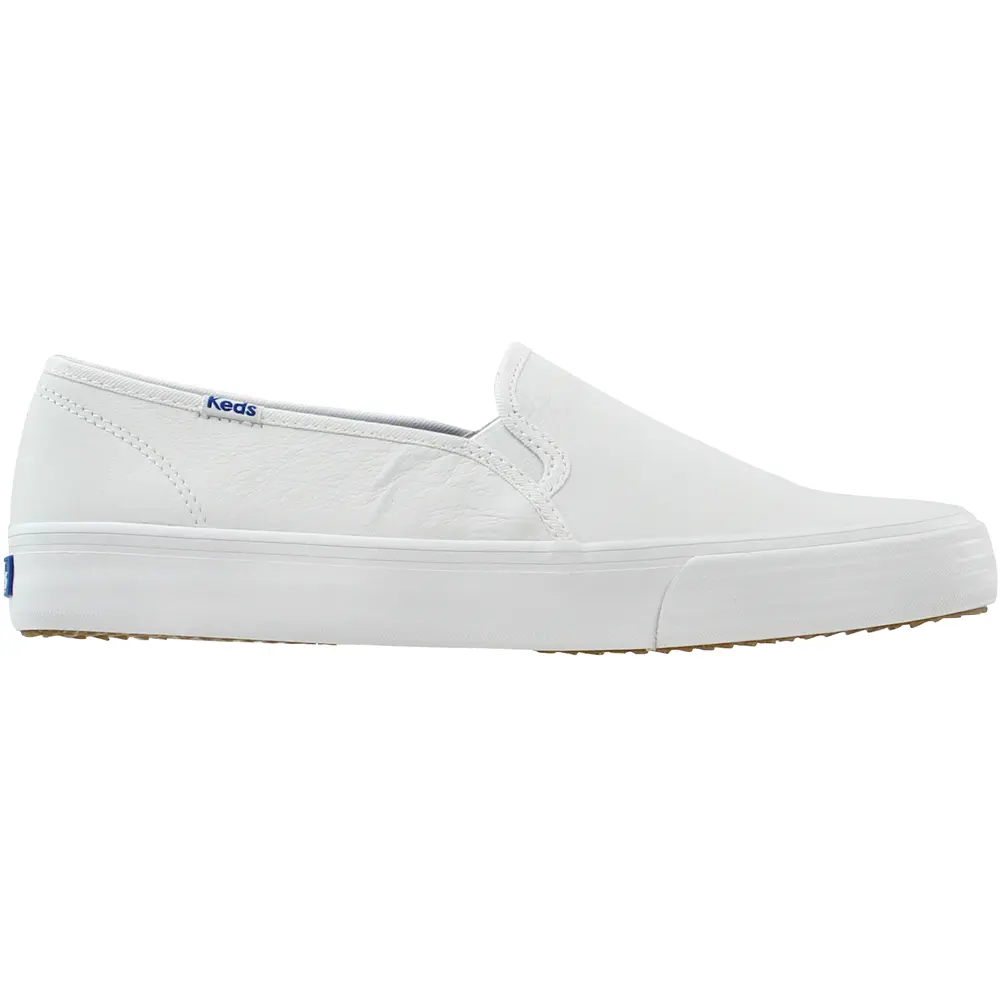Keds Womens Double Decker Leather Slip On Sneakers Shoes Casual - White