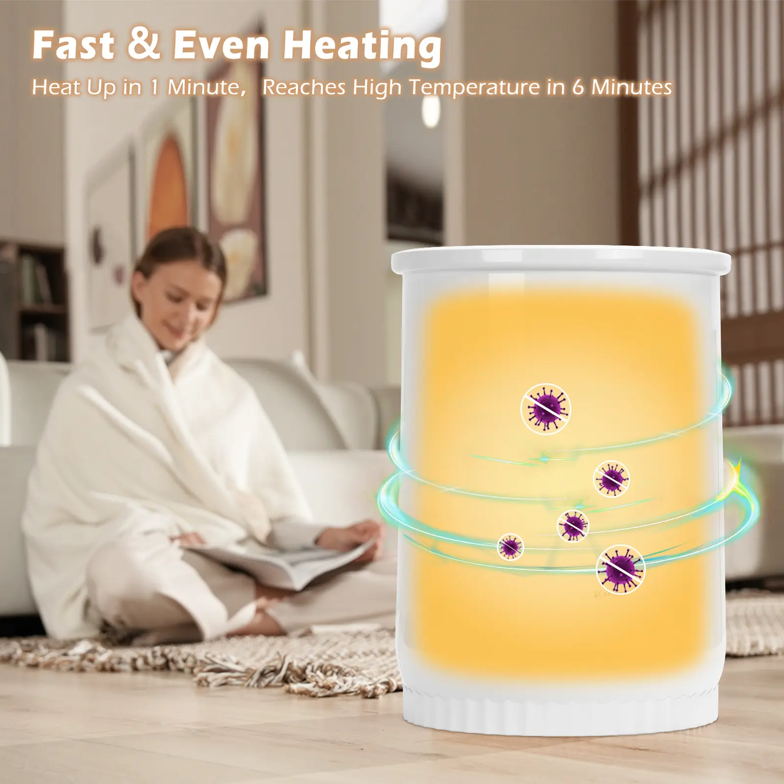 ·Compact and Safe - Safe to use, compact for easy storage. The towel warmer is lightweight enough to move around the home; the bucket and lid separate for quick cleaning, while the round-shaped base is stylish and attractive; operates efficiently and quietly.