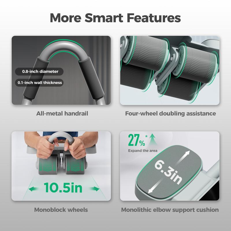Our abs roller wheel features an automatic rebound mechanism with a built-in high elasticity silent spring design that stores energy during forward rolling and assists in resetting during rebound,which is very suitable for beginners.