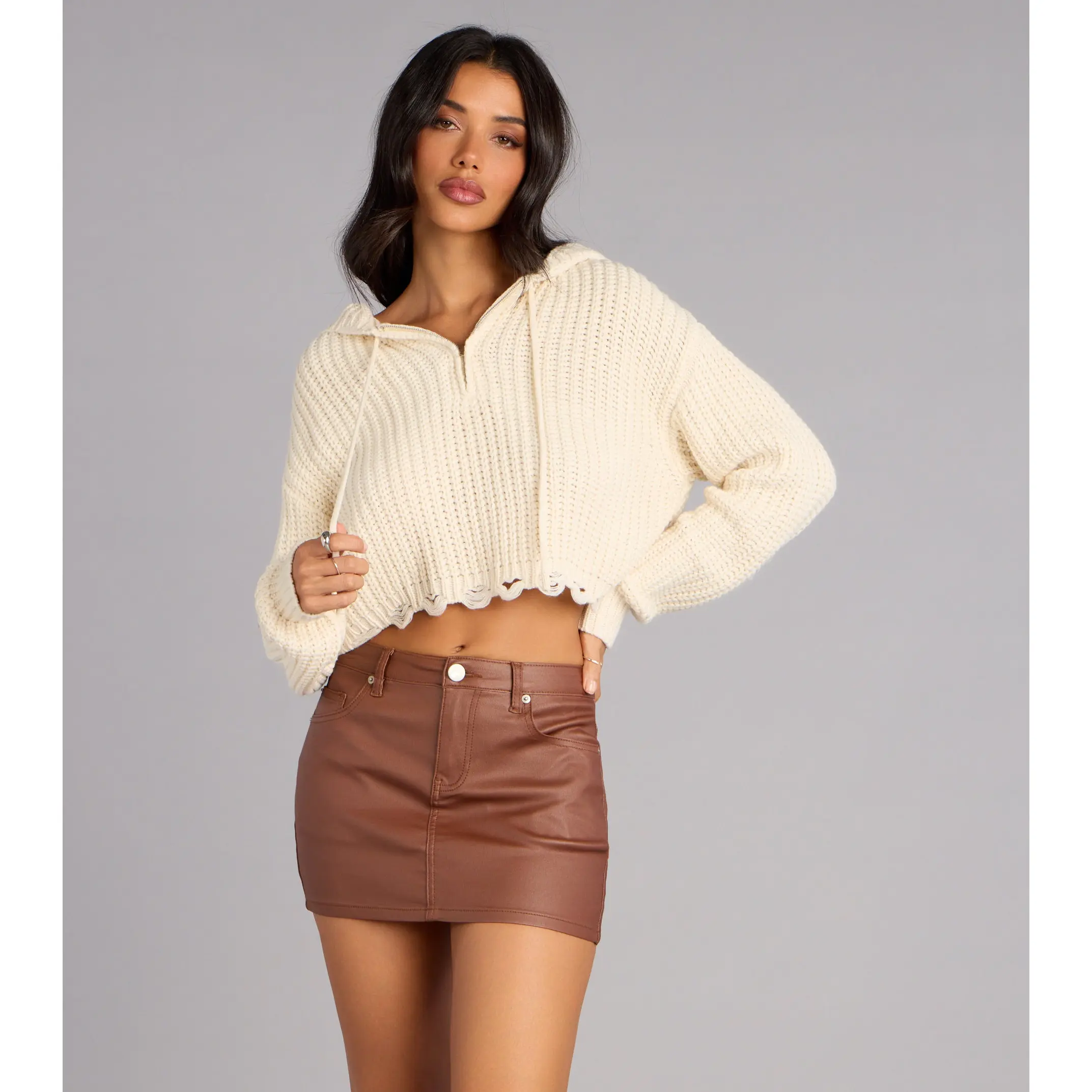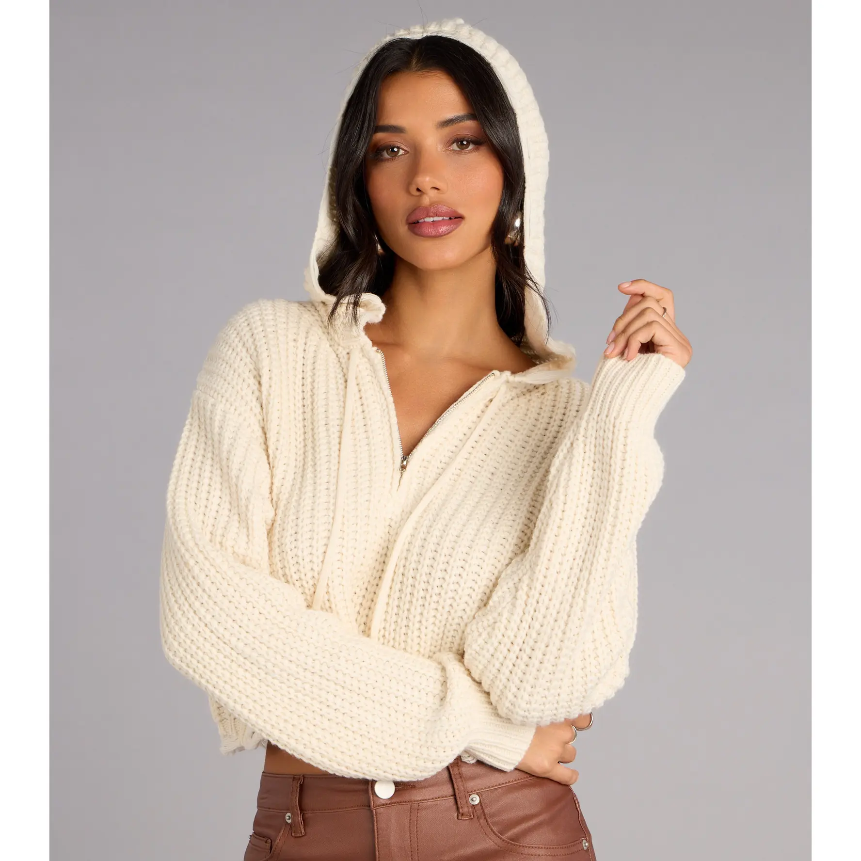 This knit hoodie is the effortlessly cozy piece you’ll wear on repeat. Featuring a chunky knit texture, zip neckline, and flirty cropped fit, this hoodie is perfect for off-duty looks.