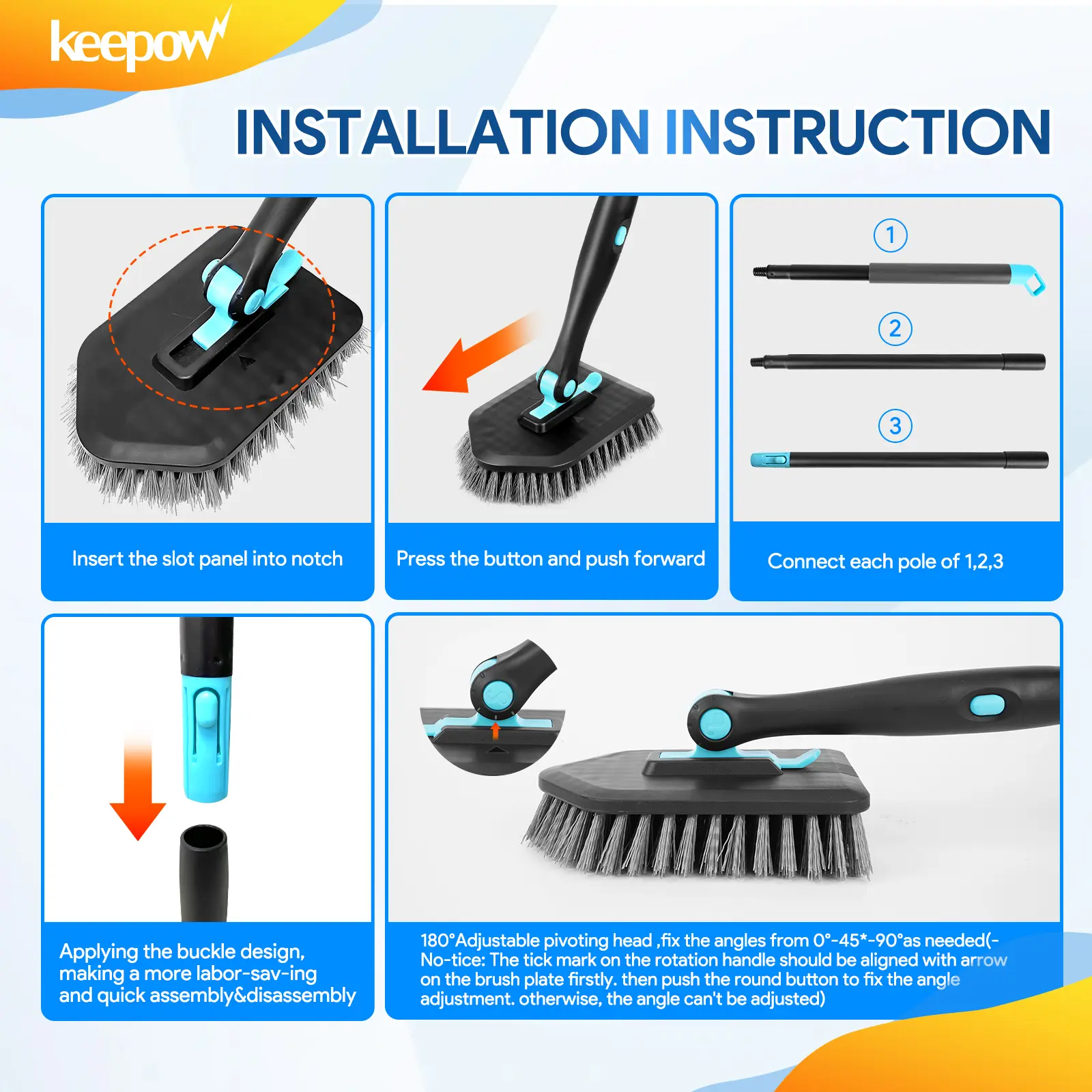 【Multifunctional Cleaning Tool】The brush head can be removed and replaced. They can also be used as hand-held grout brushes and can also be fitted with extension poles if desired. This versatile designed tub cleaner brush with long handle can meet all your daily cleaning needs, they are perfect for cleaning bathrooms, tubs, tiles, glass, walls, ceilings and hard to touch areas.