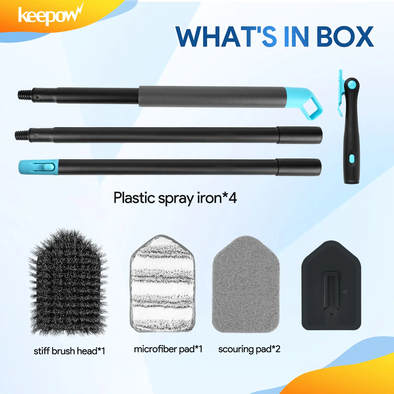 【Scrub Brush Kit】Our bathtub scrubber with long handle package include: 3 x Pole Parts, 2 x brush handle, 1 x Plate Disk, 1 x Stiff Brush, 1 x Microfiber Pad and 2 x Scouring Pad.