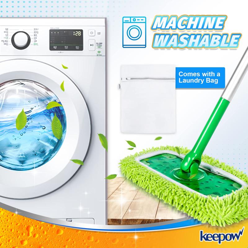 ·Machine Washable: The mop pads refills are washable and reusable, you just throw it into your washer after using to renew the fiber and re-use, no more dirt contact. The package comes with a laundry bag.