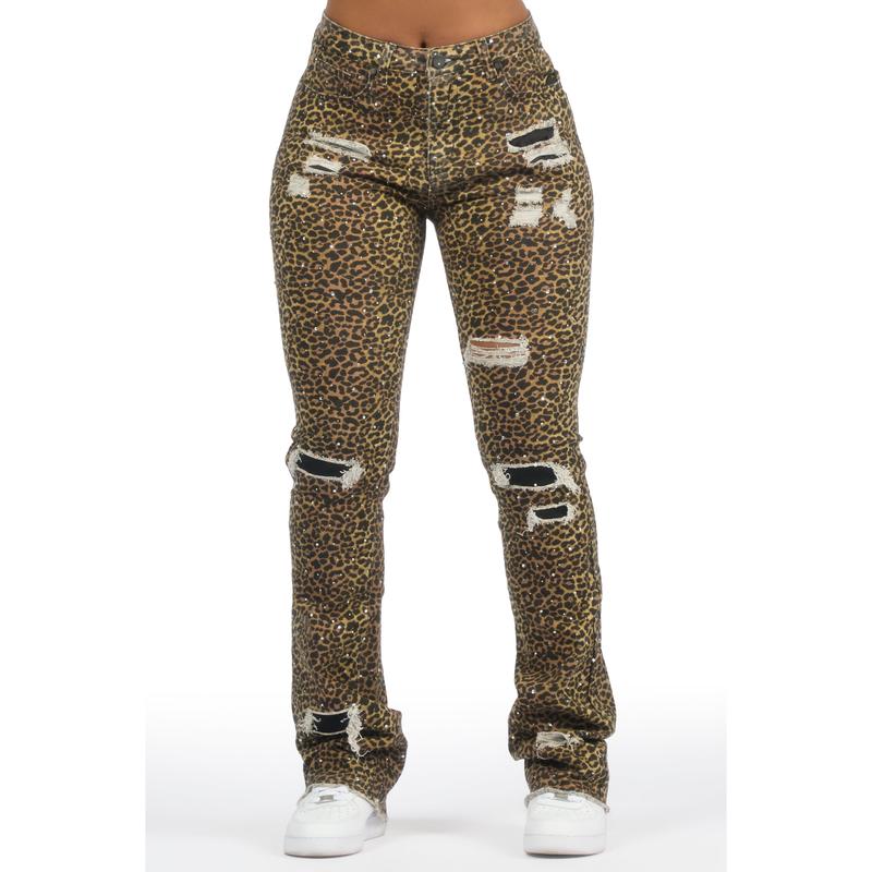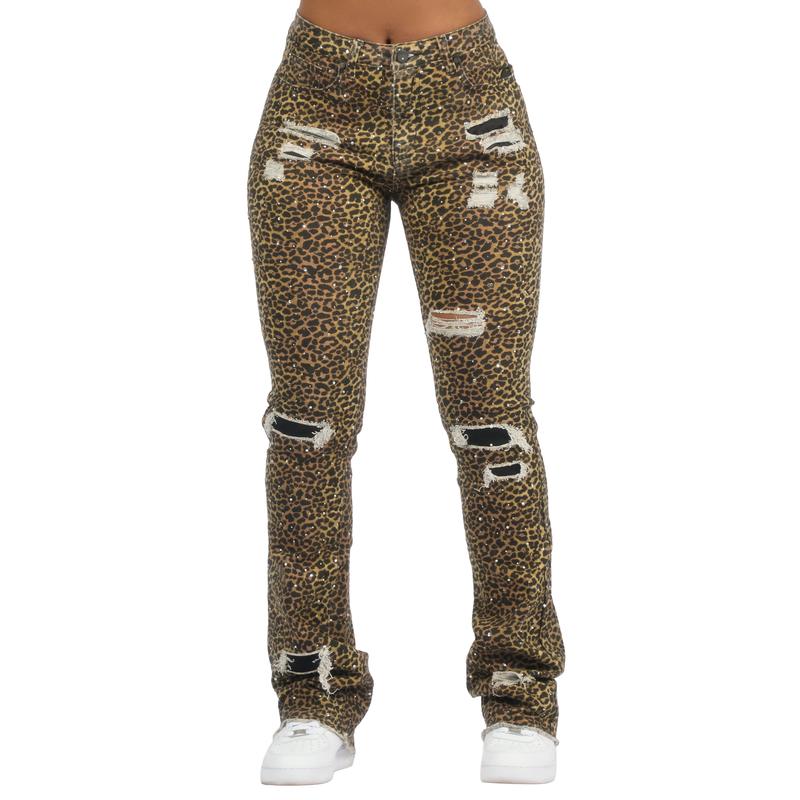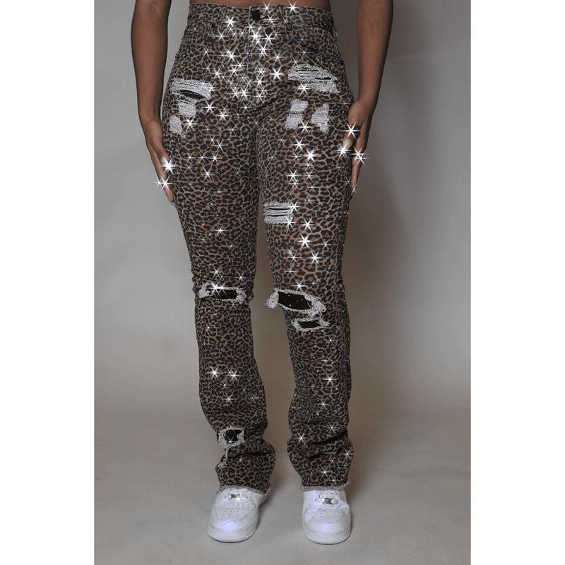 5. Kelle Cheetah Rhinestone Stacked Jean