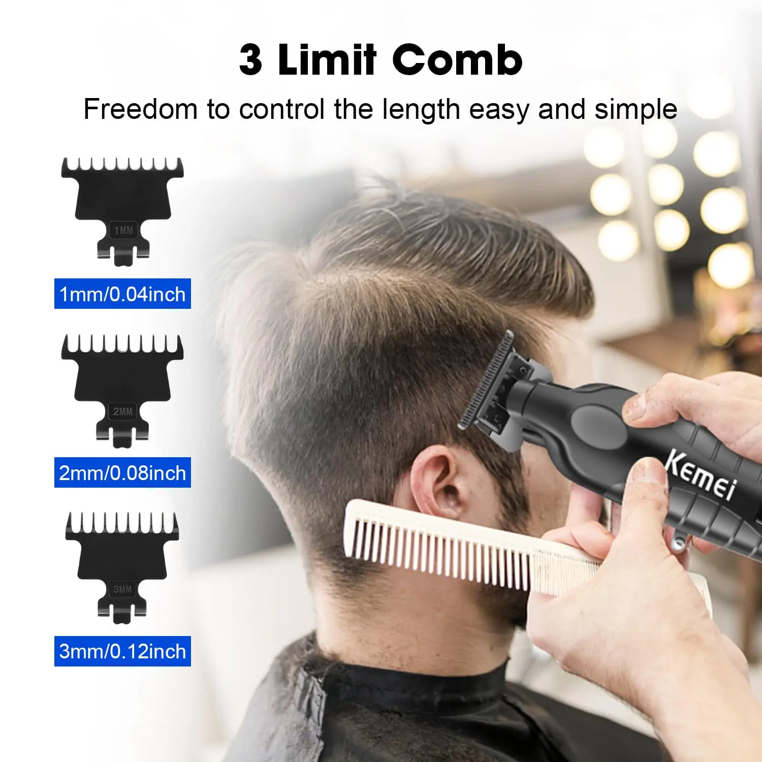 Professional hair cutting shears: KEMEI 2293 comes with a men's electric hair clipper, trimming guards in 3 different lengths (1/2/3mm), a USB charging cable, a cleaning brush. This trimmer is user-friendly and can smoothly cut all kinds of body hair, helping you achieve a crisp style.