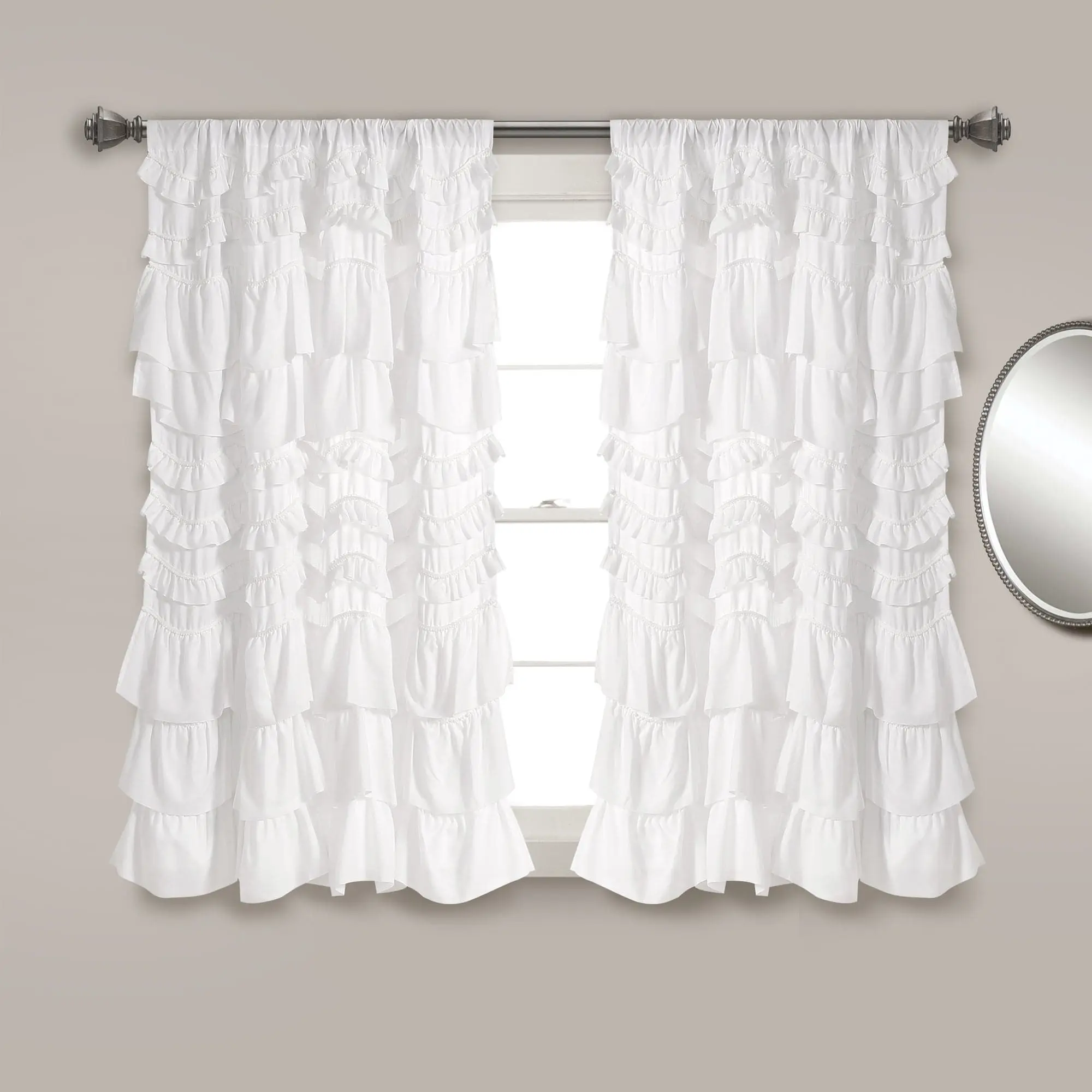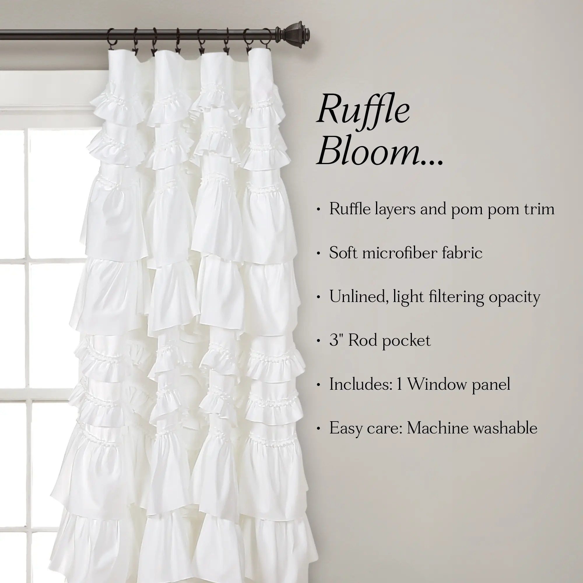 ✨ The Kemmy Window Curtain Panel combines class, style, and beauty. Elegantly layered ruffles and 3-D pom poms add texture. Perfect for any age, from a baby's nursery to a great-grandmother's home. Sold as a single panel, it measures 52 inches wide and comes in 63, 84, or 95 inches length. Choose from white, ivory, or peachy pink. 🌟