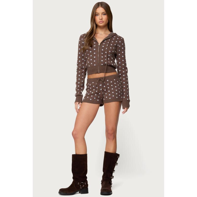 5. Kenny Polka Dot Knit Zip Up Hooded Cardigan