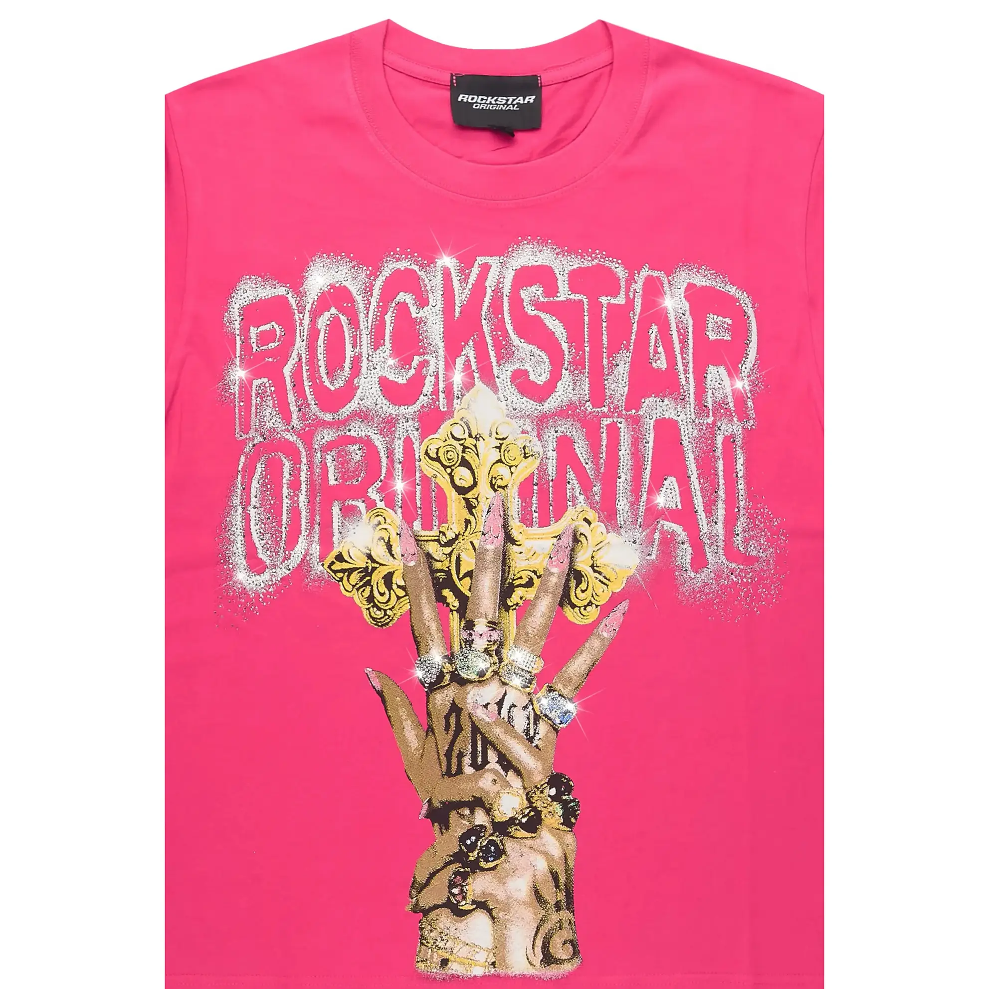 5. Kenoye Pink Rhinestone Short Sleeve Tee Shirt