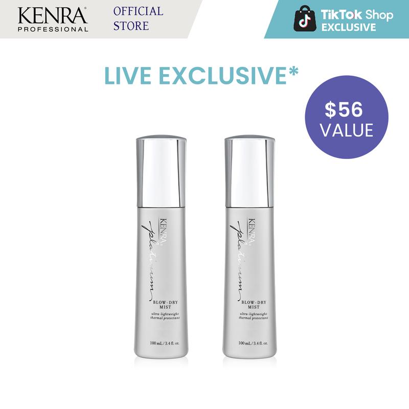 Kenra Platinum Blow-Dry Mist dramatically decreases blow-dry time up to 50% and provides intense heat protection from damage and breakage.