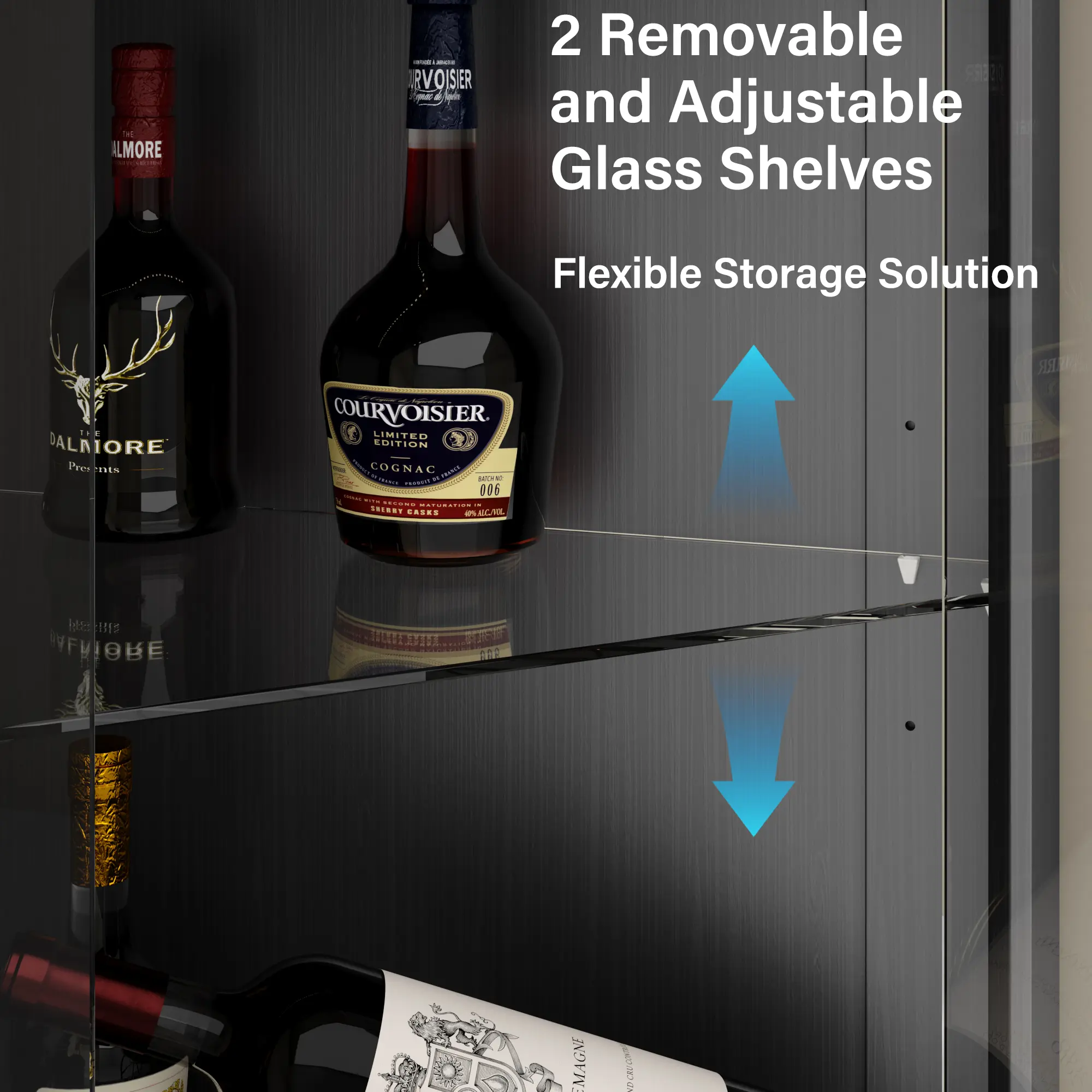 Customize shelf heights to accommodate items of all sizesβfrom delicate stemware to tall decorative pieces. The full-length transparent glass doors provide wide, unobstructed viewing while protecting against dust, making this an ideal glass display case for any cherished collection. The clear glass cabinet design ensures your collectibles are always visible and beautifully presented.