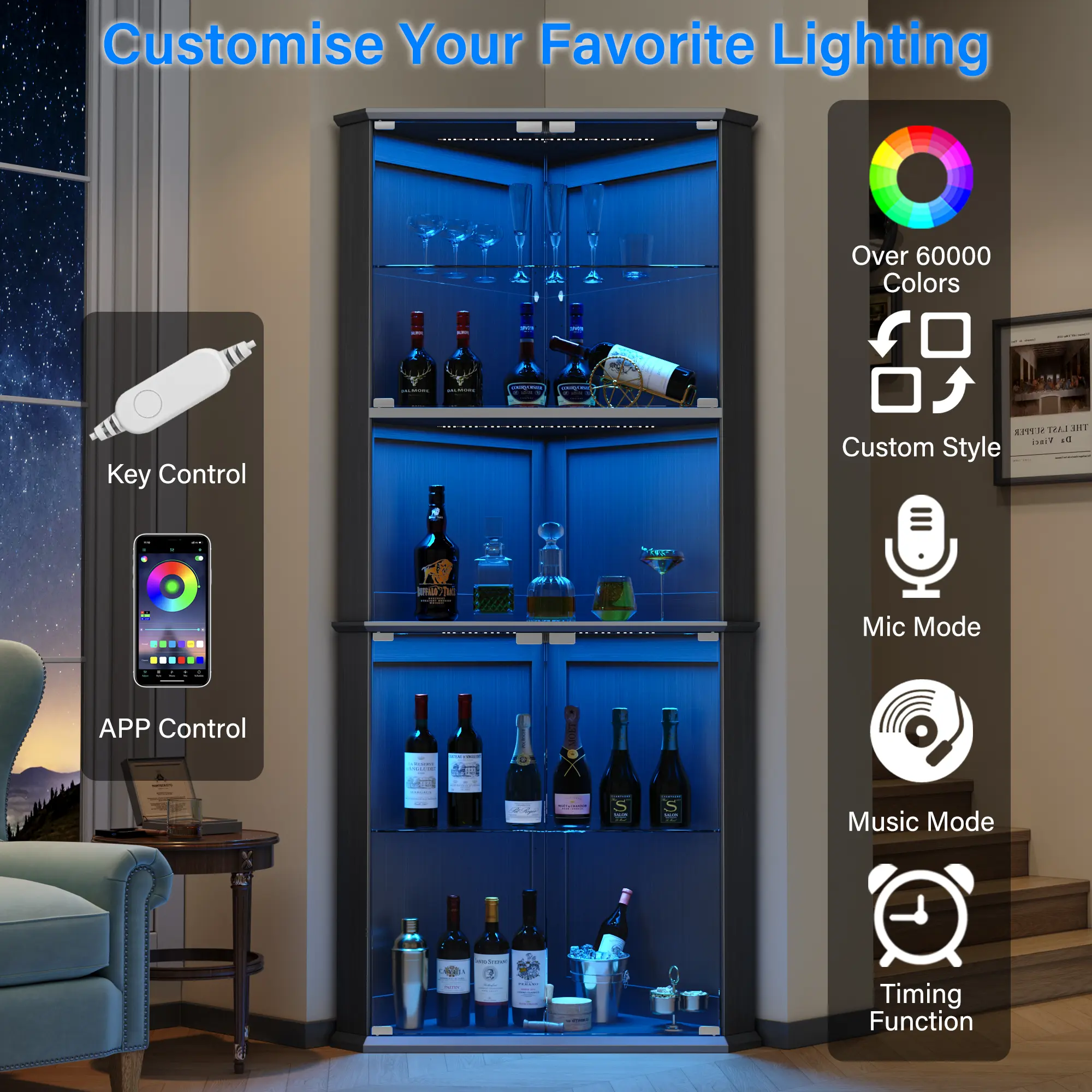 Elevate your display with built-in RGB LED lights featuring 7 vibrant colors. Control the lighting effortlessly via APP, remote, microphone mode, or music sync to create the perfect ambiance. This lighted curio cabinet delivers a museum-quality showcase that highlights fine china, figurines, or glasswareβday or night.