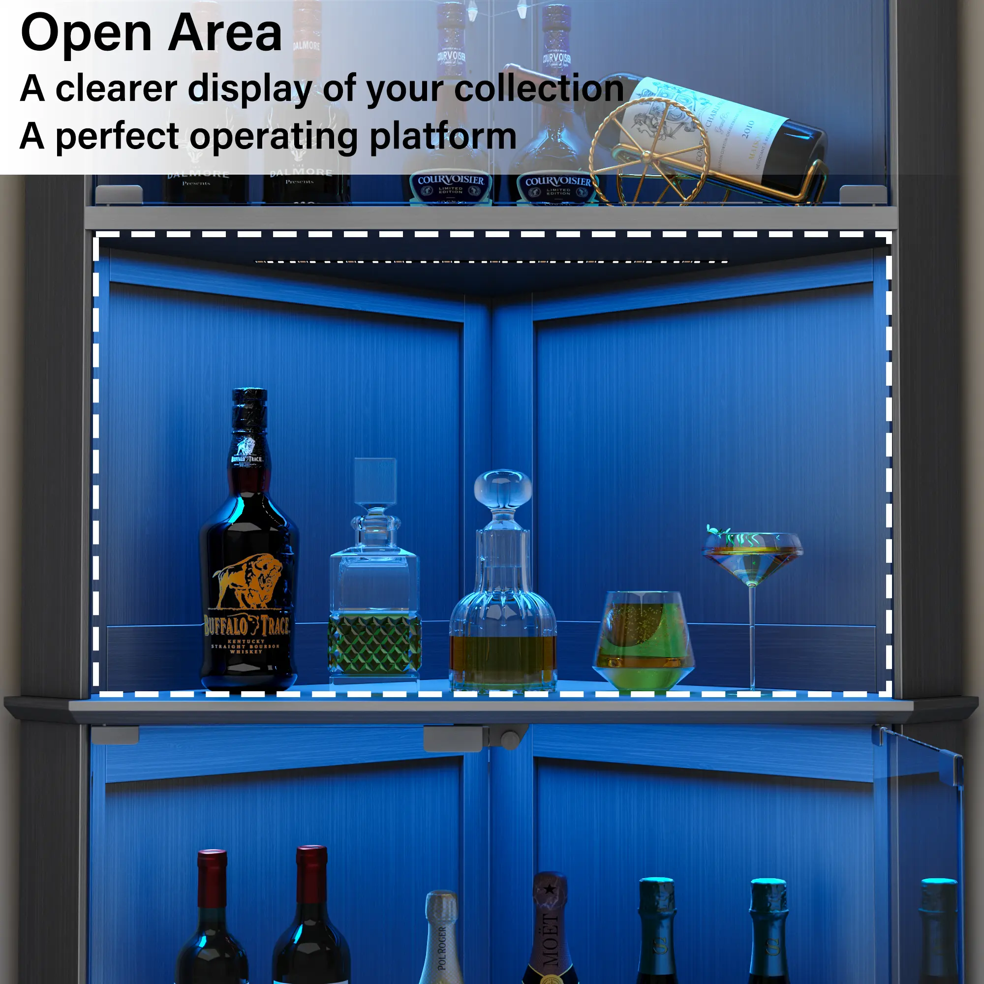 The semi-open workbench surface offers a functional space for bartending, mixing drinks, or staging items for display. This thoughtful feature transforms your glass display cabinet into a versatile bar cabinet or serving stationβgiving you both storage and workspace in one elegant unit.
