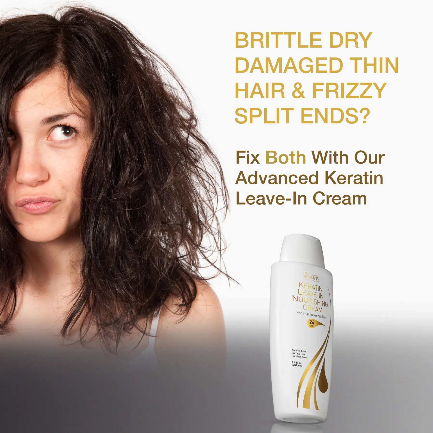 Transform your hair with our Keratin Leave-In Conditioner cream for dry damaged hair – an indulgent, ultra-hydrating formula designed to tame frizz, define curls, and repair dry damaged thin fine hair.