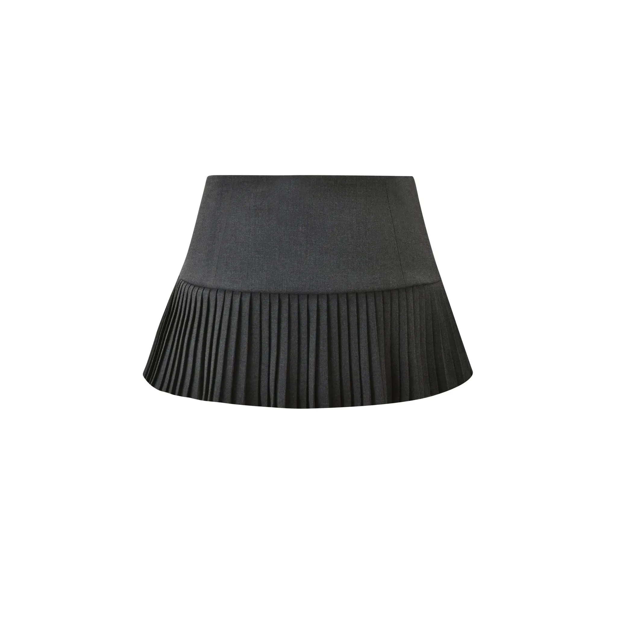 ·Featuring micro pleats with a two-tiered asymmetrical front