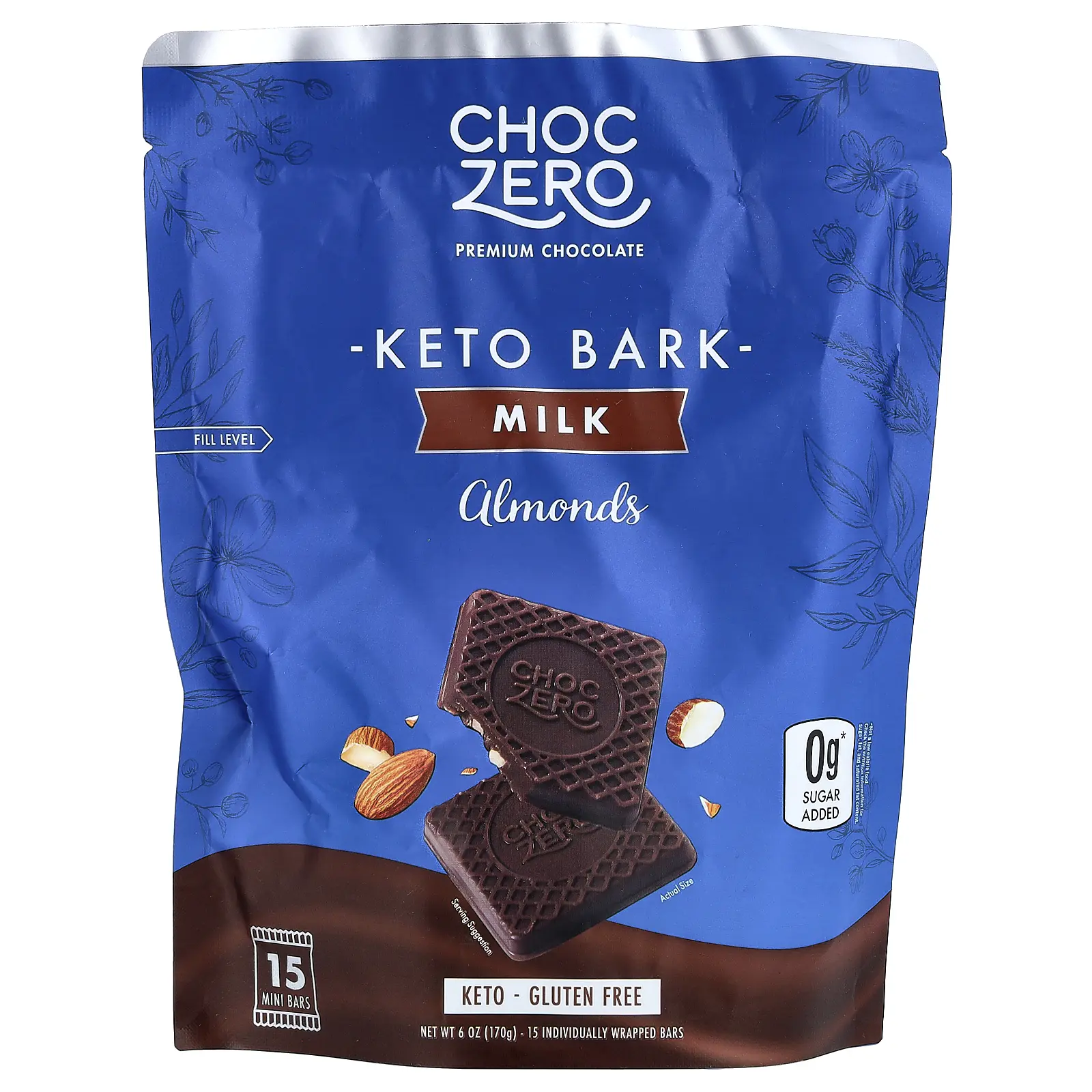 ChocZero Keto Bark, Milk Chocolate, Almond, 15 Mini Bars, 6 oz (170 g)