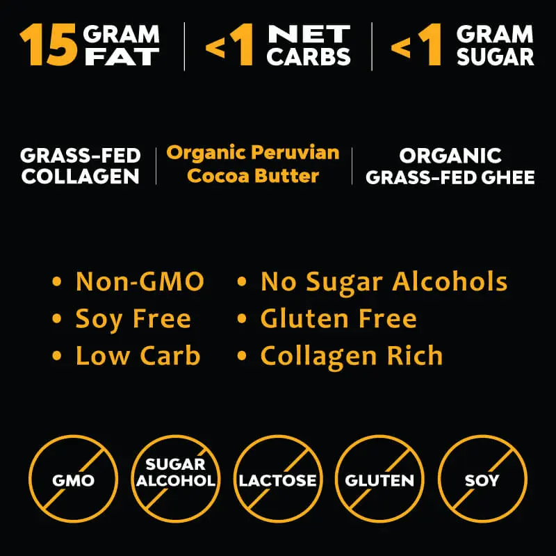 Blanched almonds, organic coconut, organic cocoa butter, grass-fed collagen, non-gmo allulose, organic grass-fed ghee, organic flavors, real salt, stevia