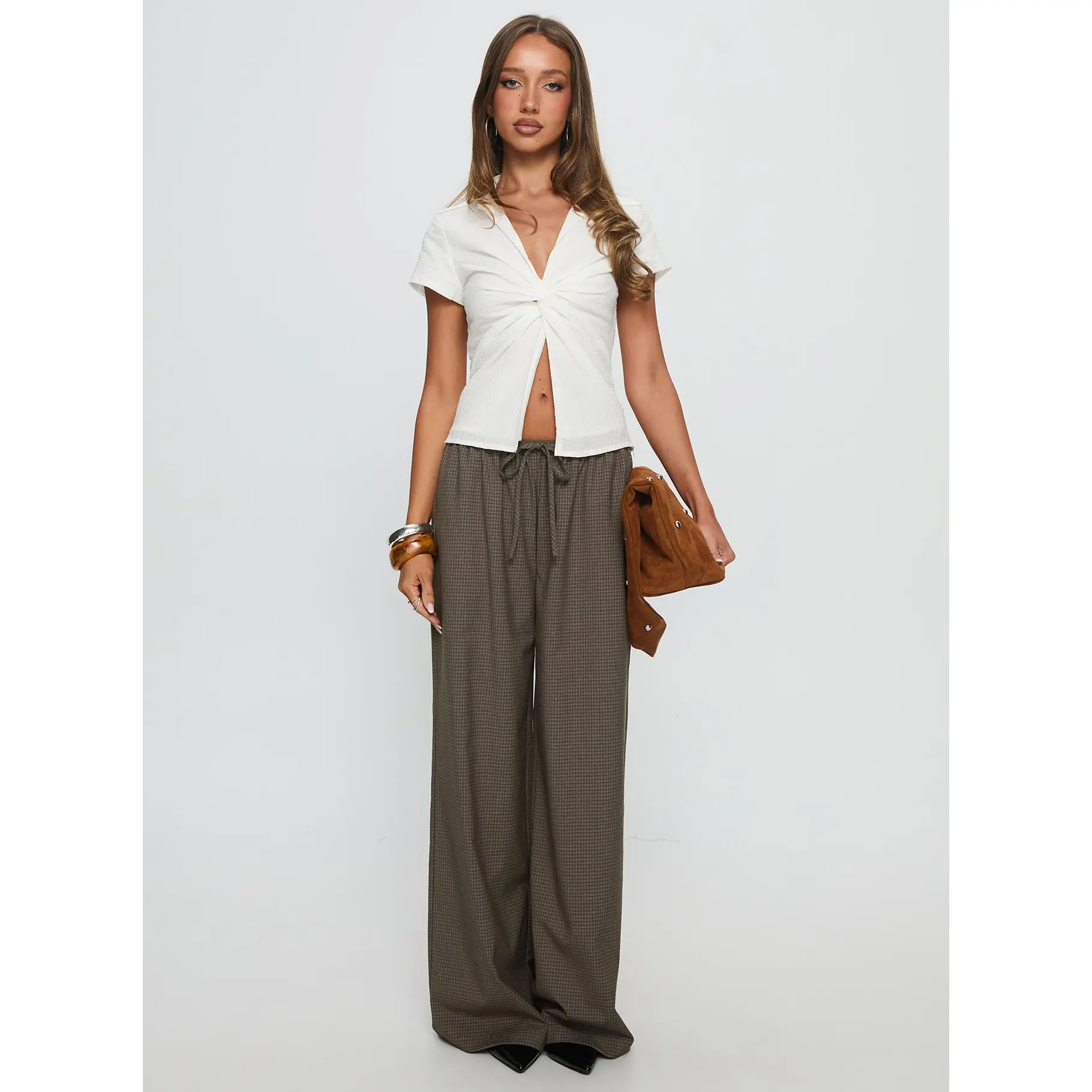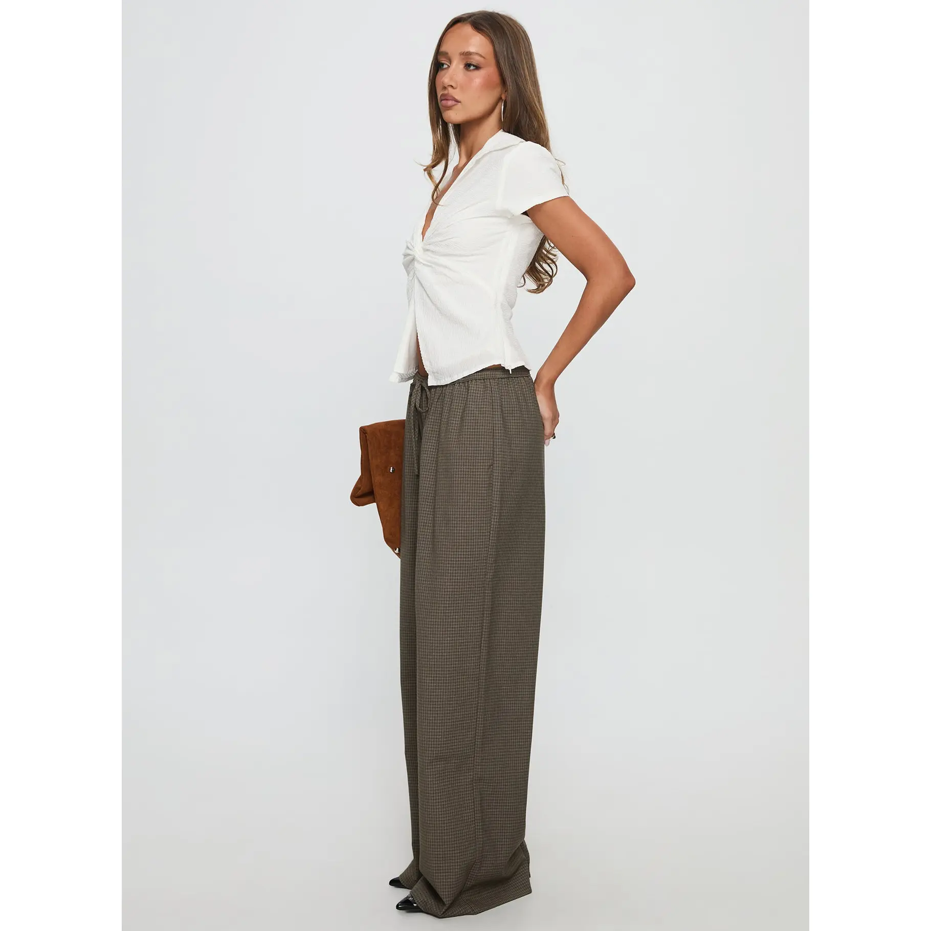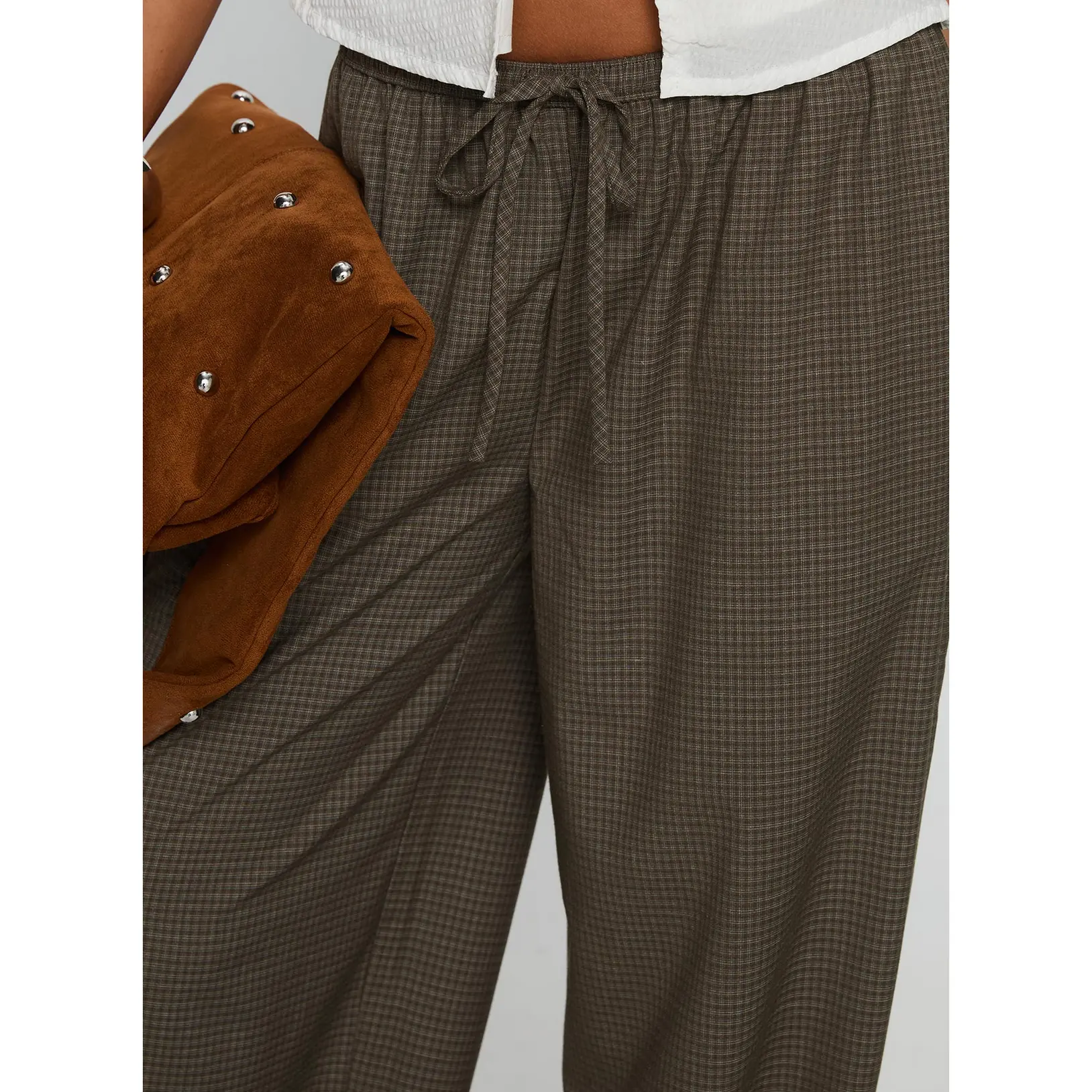 5. Ketrina Tie Waist Pants Brown Plaid