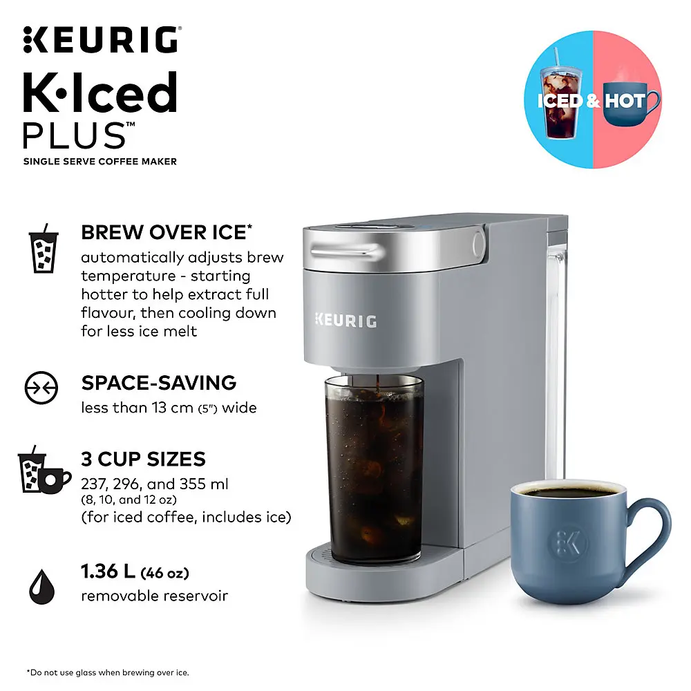 Introducing the new Keurig® K-Iced Plus™ coffee maker. Enjoy refreshingly delicious iced coffee and full-flavored hot coffee from one multitalented coffee maker. Brew the perfect coffee for any craving, mood, or mouthwatering moment. Always easy, always right.