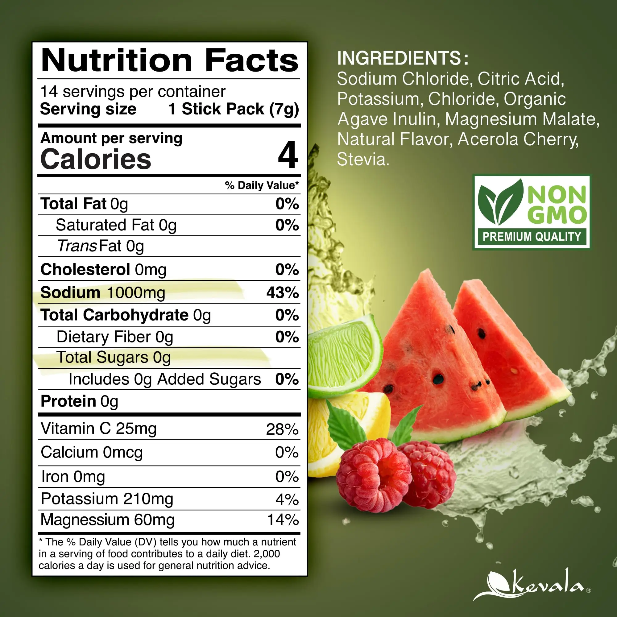 ·Provides sodium, potassium, magnesium, and Vitamin C from acerola cherry.
