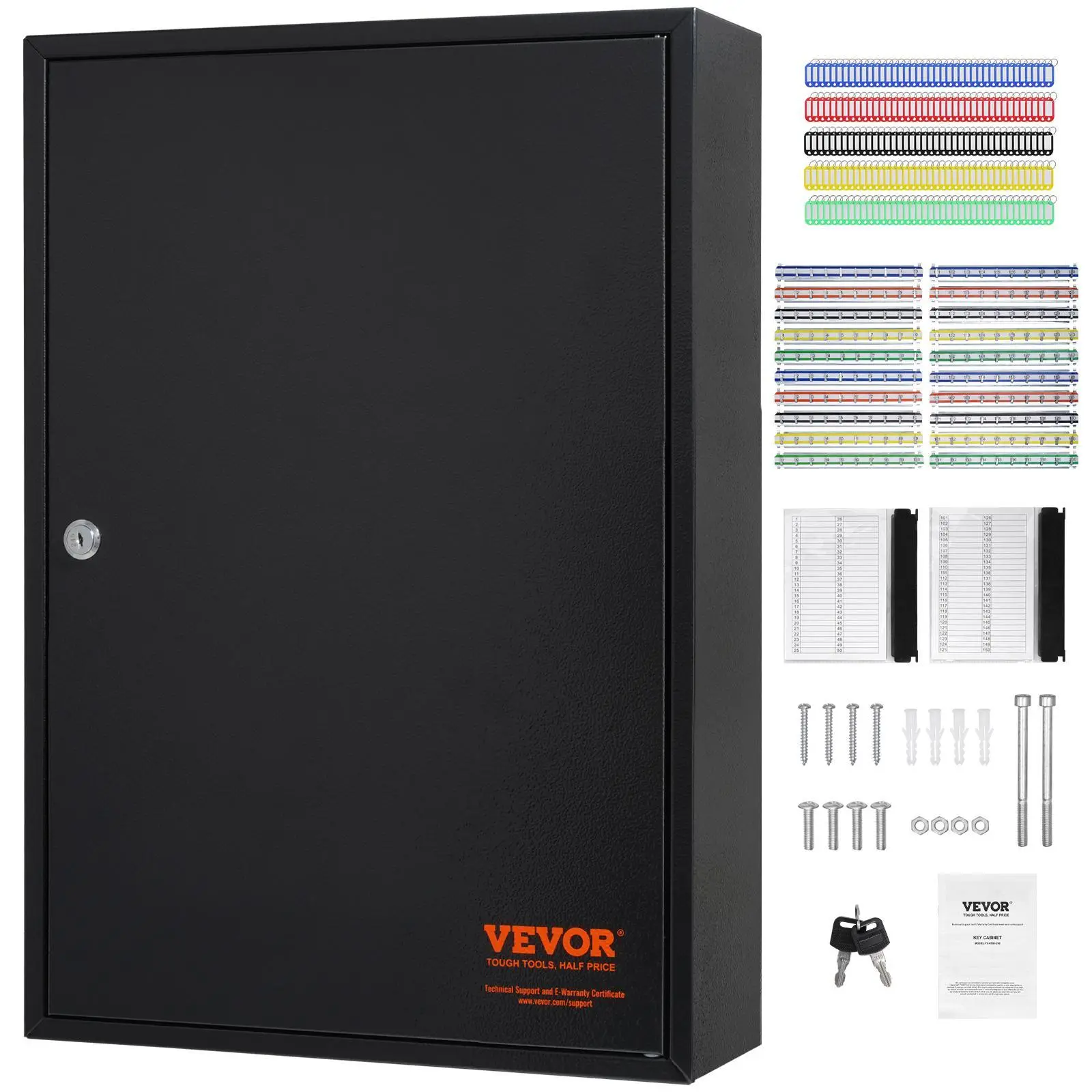 5. VEVOR 200-Key Cabinet, TikTokShopBlackFriday, Key Lock Box with Adjustable Racks, Security Key Storage Box Steel, Key Organizer with 200 Colorful Key Tags and 4 Record Cards for School, Office, Hotel
