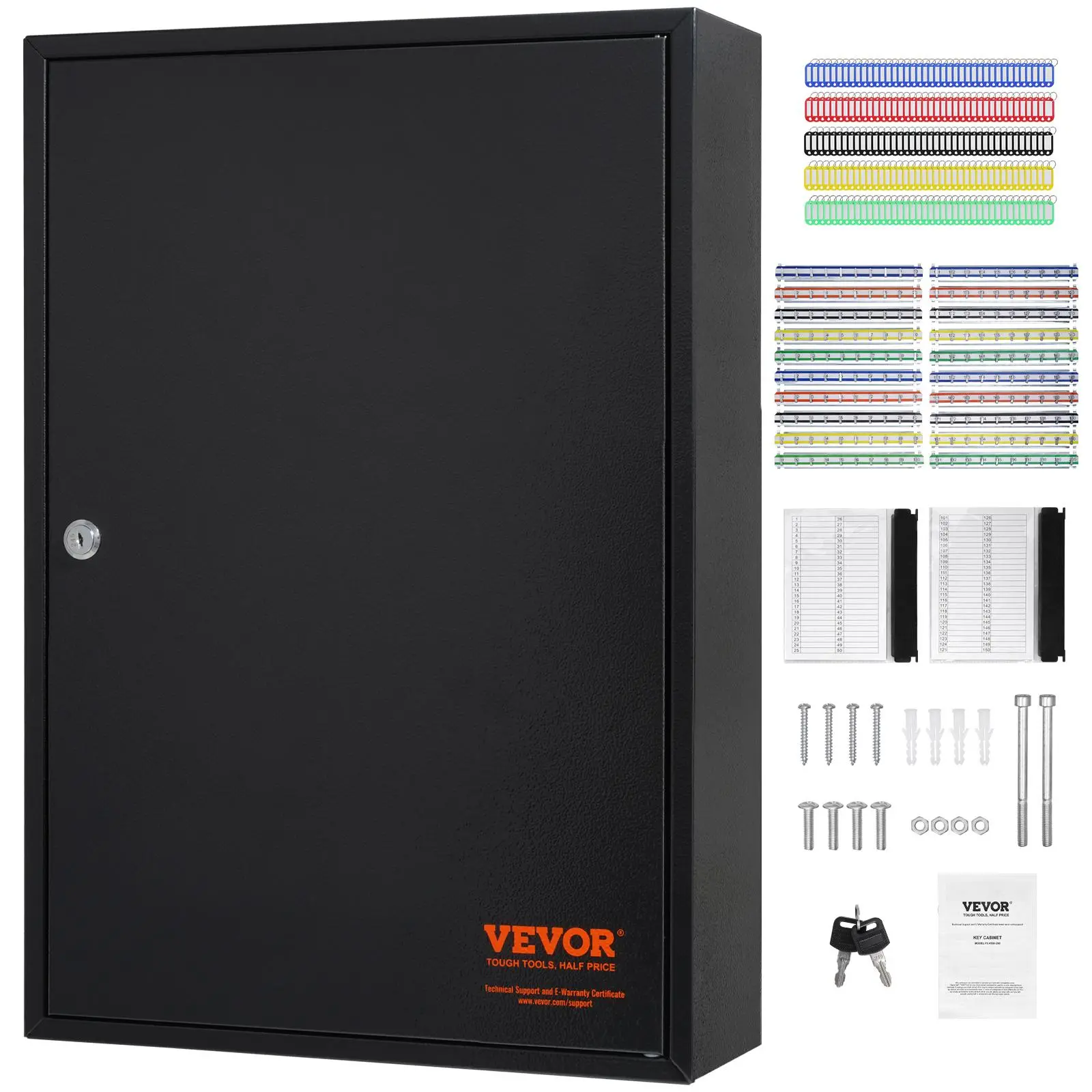 5. VEVOR 200-Key Cabinet, Key Lock Box with Adjustable Racks, Security Key Storage Box Steel, Key Organizer with 200 Colorful Key Tags and 4 Record Cards for School, Office, Hotel