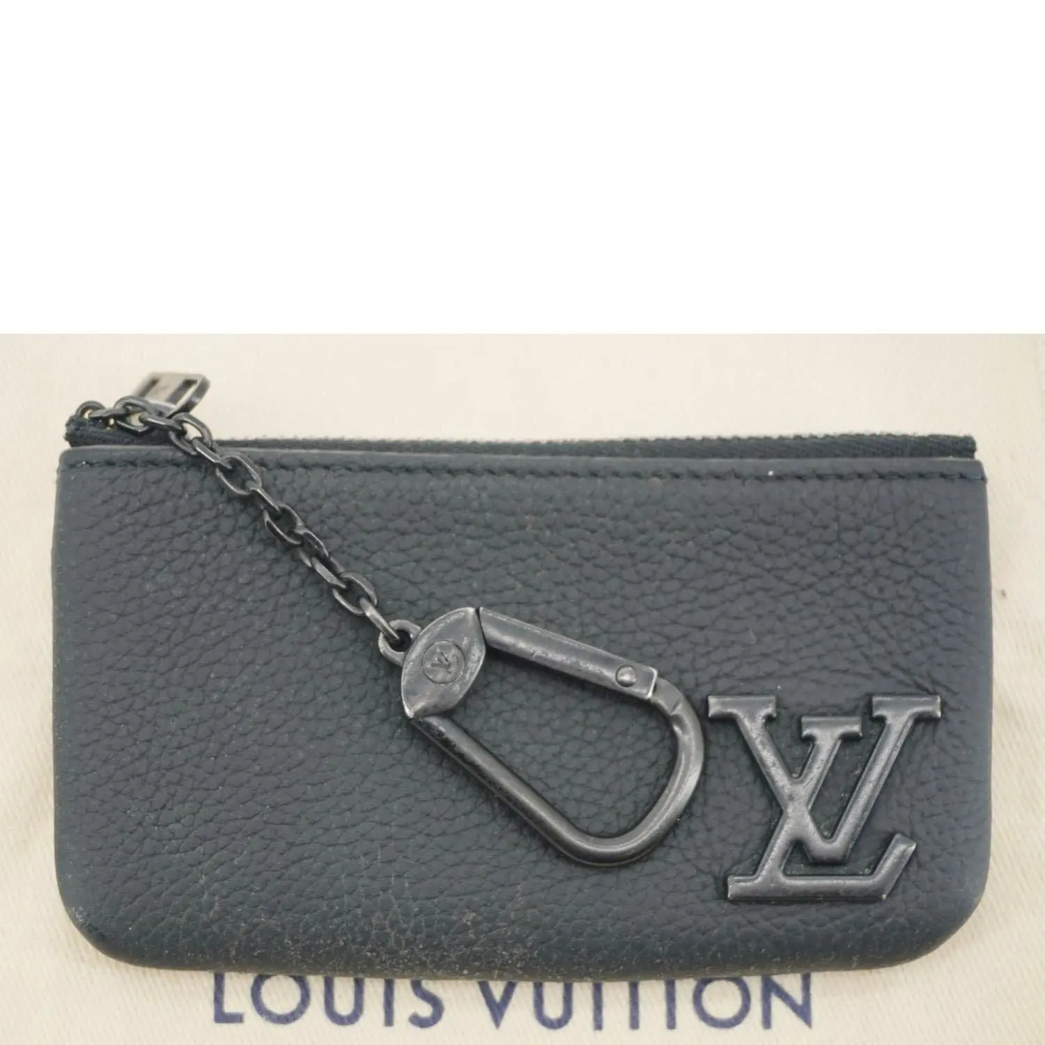 Crafted from luxurious Aerogram leather, this sleek Louis Vuitton key pouch features a minimalist design with an LV monogram detail. Perfect for storing keys and small essentials with a refined touch.