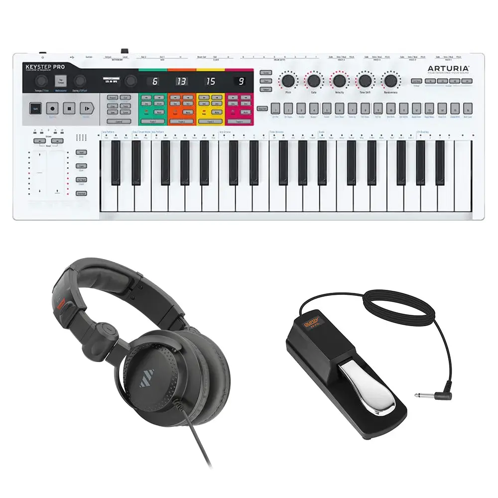 This bundle includes HPC-A30-MK2 Closed-Back Studio Monitor Headphones offers a solution for experiencing rich and natural sound when listening to music through a mobile device or monitoring a podcast on your computer. Plus a piano-style sustain pedal with a high-quality, rugged build. The unit features switchable polarity, making it compatible with most electronic keyboards that have a 1/4" foot-switch input jack.