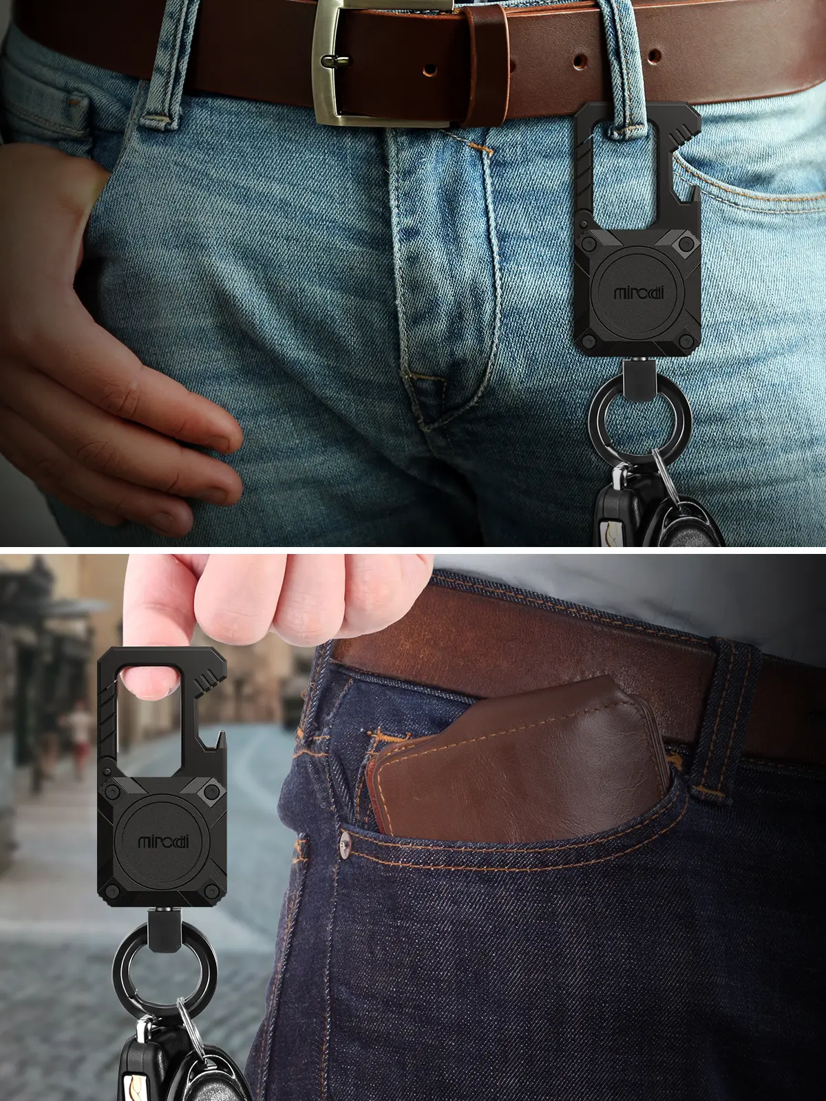 ·【Versatile Use & Bottle Opener Design】- Meansuring 3.95*1.4*0.43 inches, 0.12 lb. The smart key chain locator has a built-in spring buckle, which makes it convenient to press and spring back. The key chain men is designed with a bottle opener, so you no longer need to purchase a bottle opener separately.