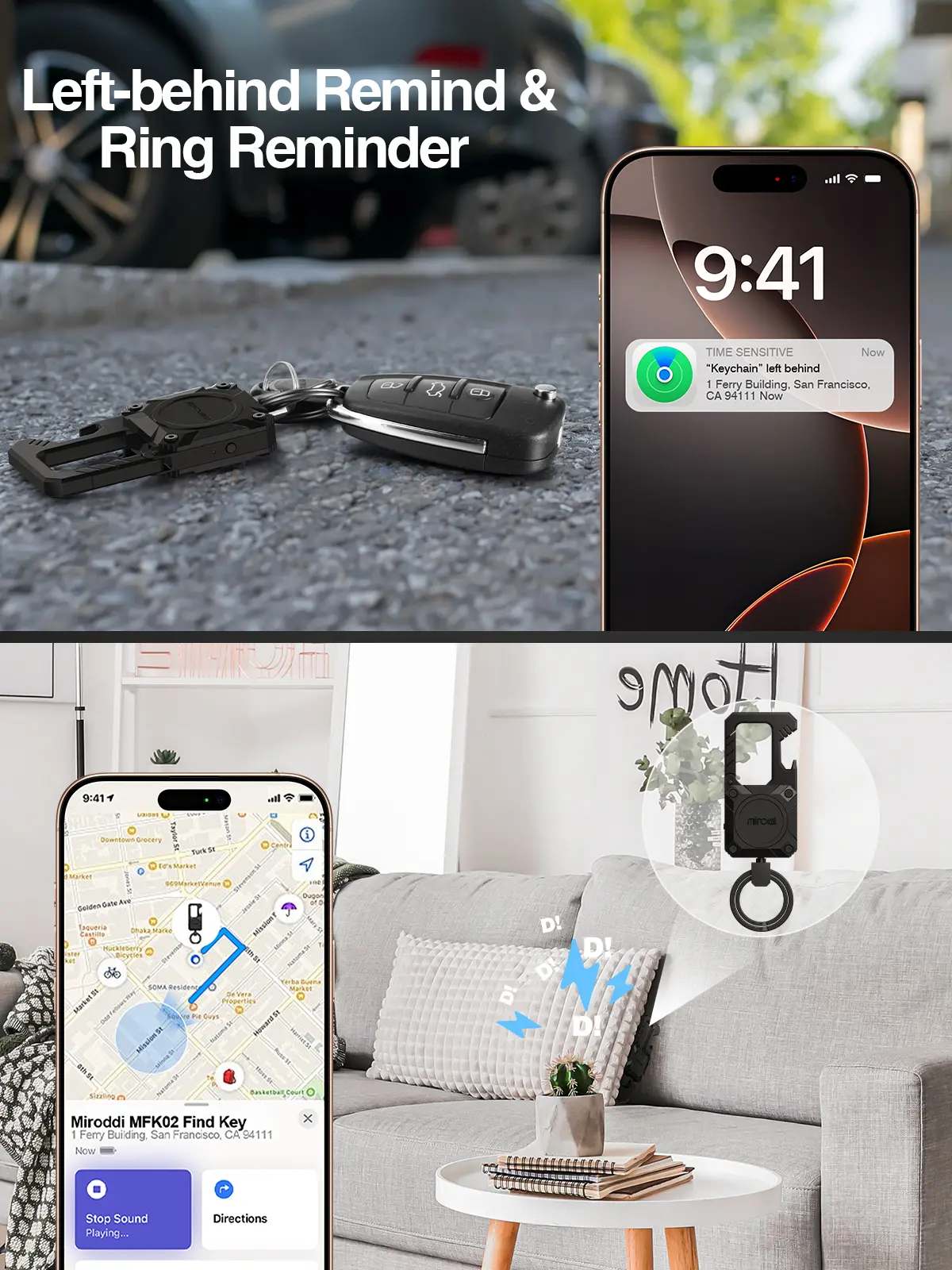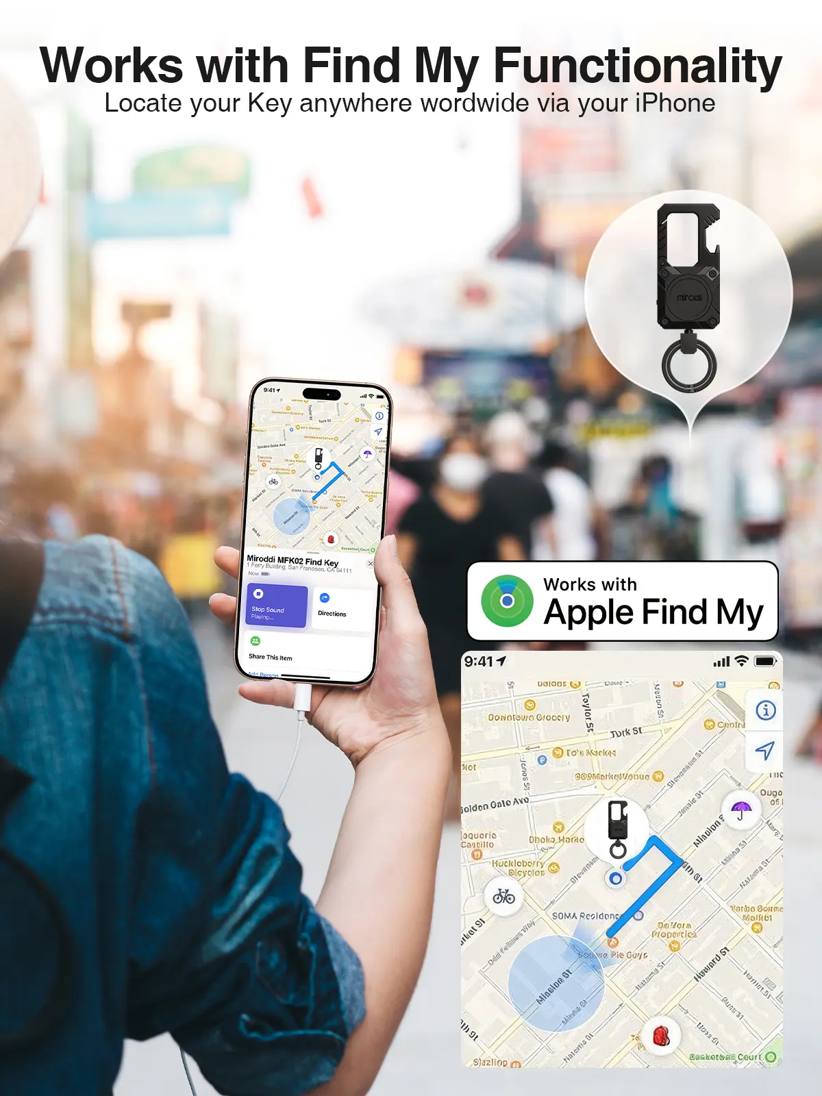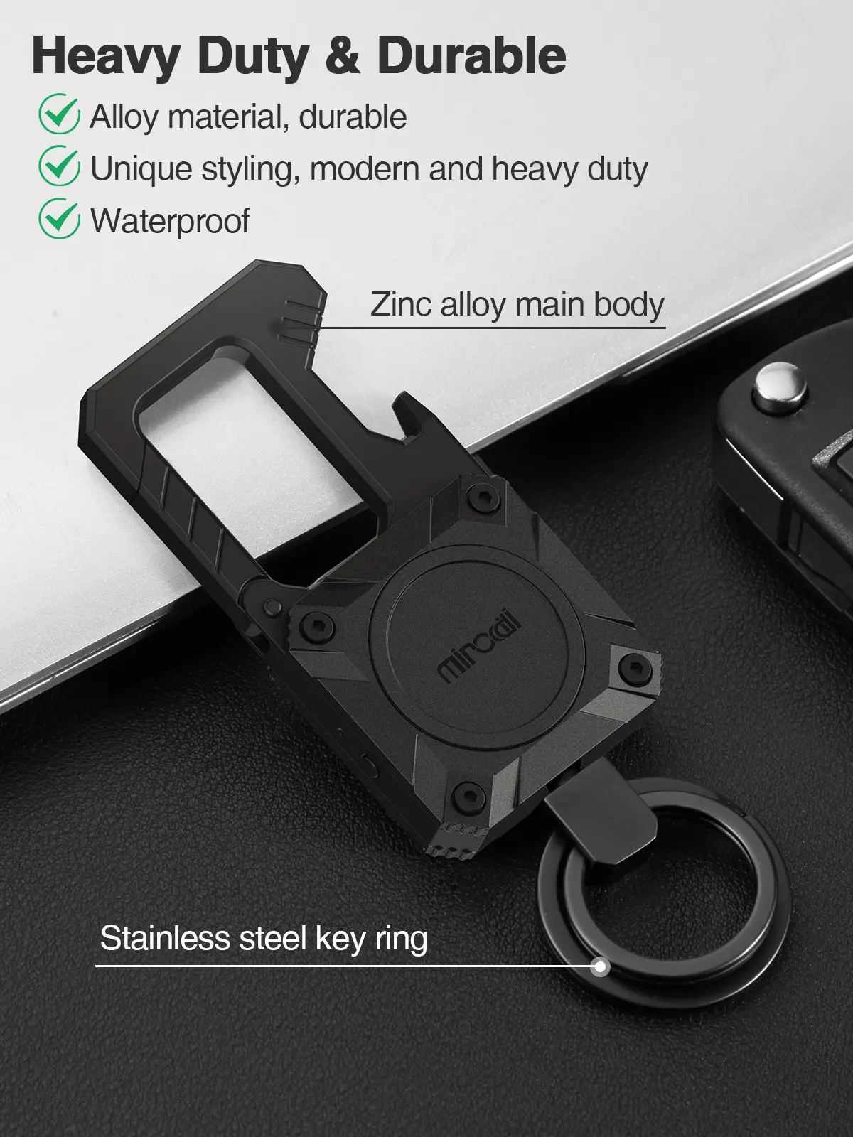 ·【Works with Find My App】- The keychains for men can be connected to the Apple "Find My" app (iOS Only). Within Bluetooth range (50m/160ft), play a sound on your iPhone/iPad/Mac and locate your keys. Meanwhile, your phone will receive a notification when your keys finders & trackers is out of Bluetooth range. Note: Only for iOS, Not for Android devices.