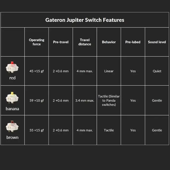 Best keyboard Iāve ever owned by a large margin and Iāve owned a lot of mechanical keyboards. I typically go with brown switches but decided to try the banana and it was a great decision. Get this keyboard!