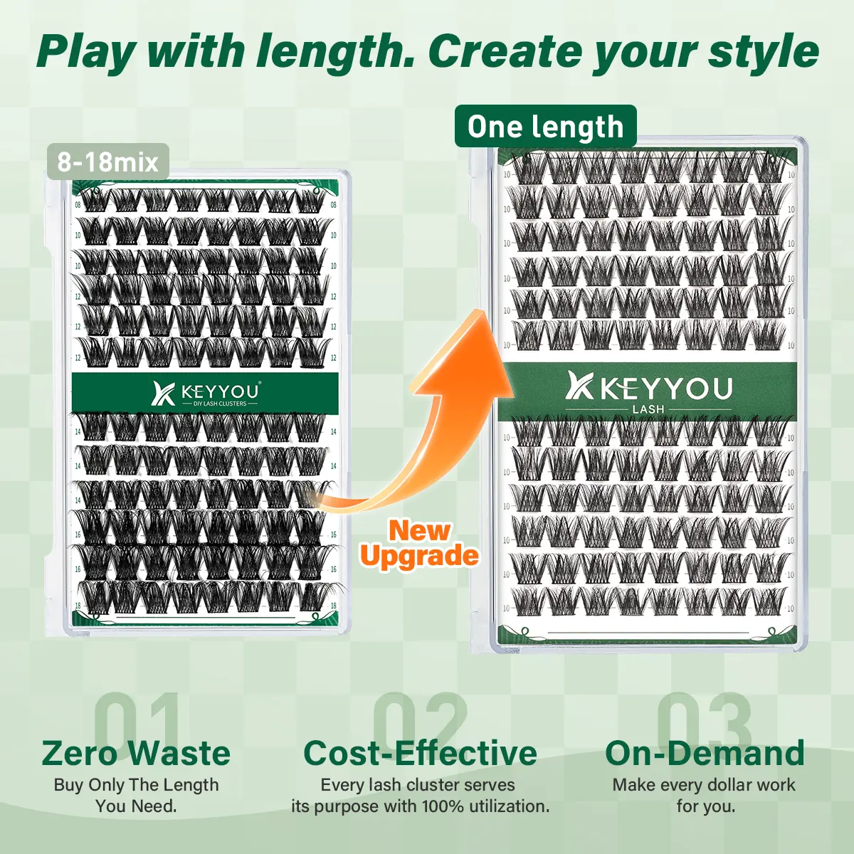 Elevate your lash game with the KEYYOU DIY Lash Cluster. This pack includes 96 pieces, offering versatility in lengths: 10mm, 12mm, 14mm, and 16mm. Perfect for crafting personalized lashes, these clusters allow for endless creative possibilities.