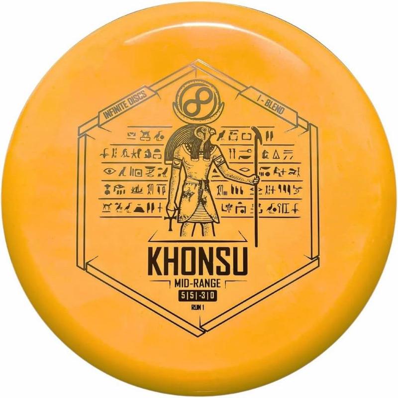 The Khonsu is an awesome, understable, beadless addition to Infinite Discs's midrange line up. Throw the Khonsu with a hyzer release and it will pop-up to fly extremely straight. Or give it a slight anhyzer release and it will hold the line when trying to get around obstacles in your path. This disc feels excellent and is a must for anyone needing an understable midrange.