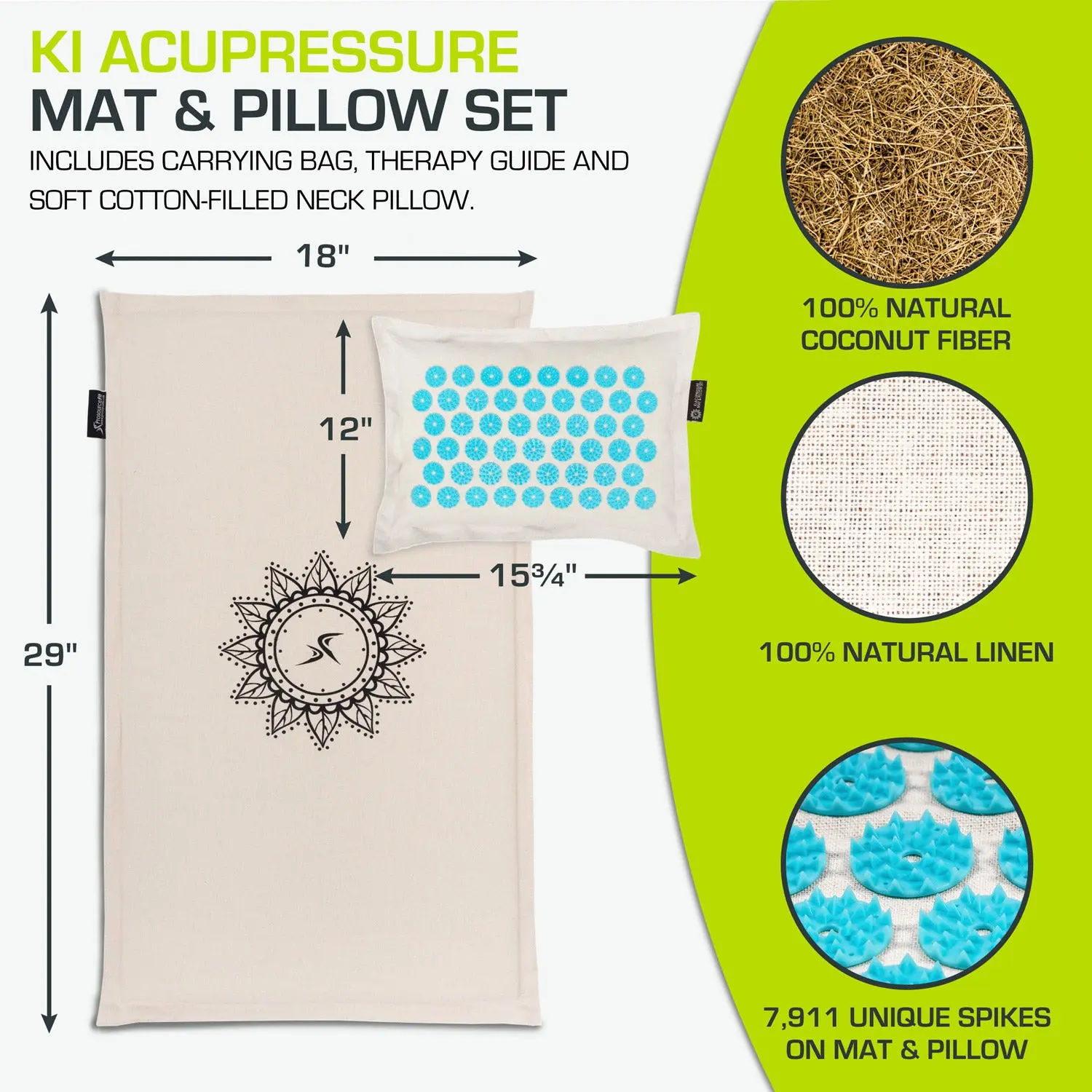 ·Acupressure mat has 6,534 acupressure points. Neck pillow has 1,377 acupressure points