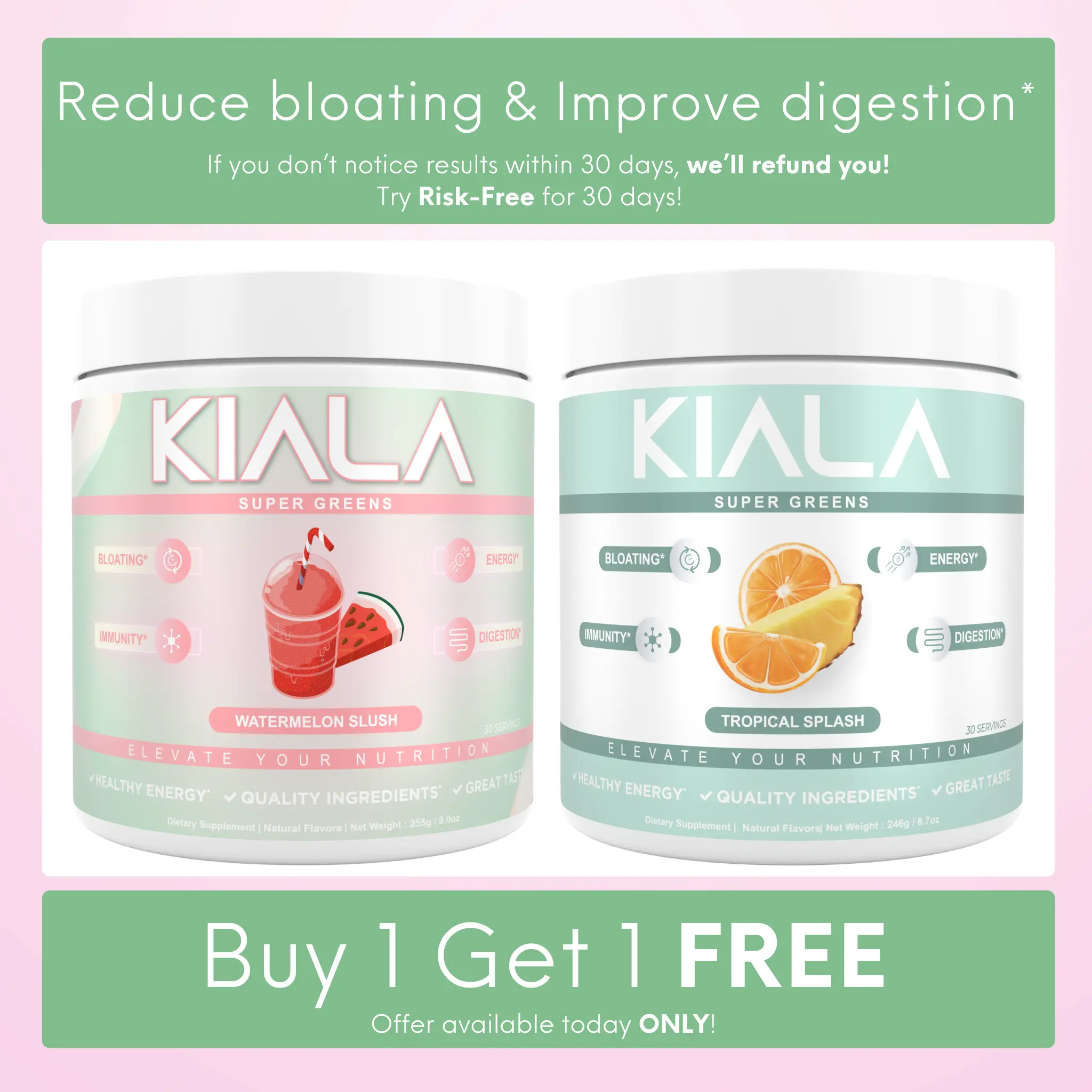 ·TROPICAL SPLASH FLAVOR FOR A TASTE OF PARADISE: Experience the tropical escape of Kiala Super Greens in the delicious Tropical Splash flavor. Say goodbye to bitter, grassy tastes – this blend is crafted to be enjoyed on its own or mixed into your favorite cold beverages, making it easy to stick to your wellness routine with a refreshing flavor you'll look forward to.