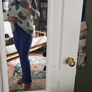I was warned before I purchased this sky blue, Diva stretch high rise 27” kick flare pant! Now I need all of the colors in this stretchy, comfortable, pant! I purchased a size xl and the fit is great! (I primarily wear size 16 at this time!) faux pockets in front, real pockets in the back!
