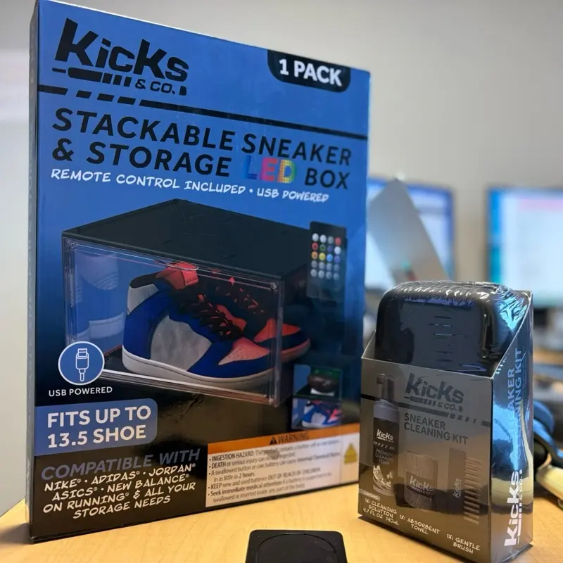 Kicks & Co. Stackable LED Shoe Storage Box Black plus Cleaning Kit