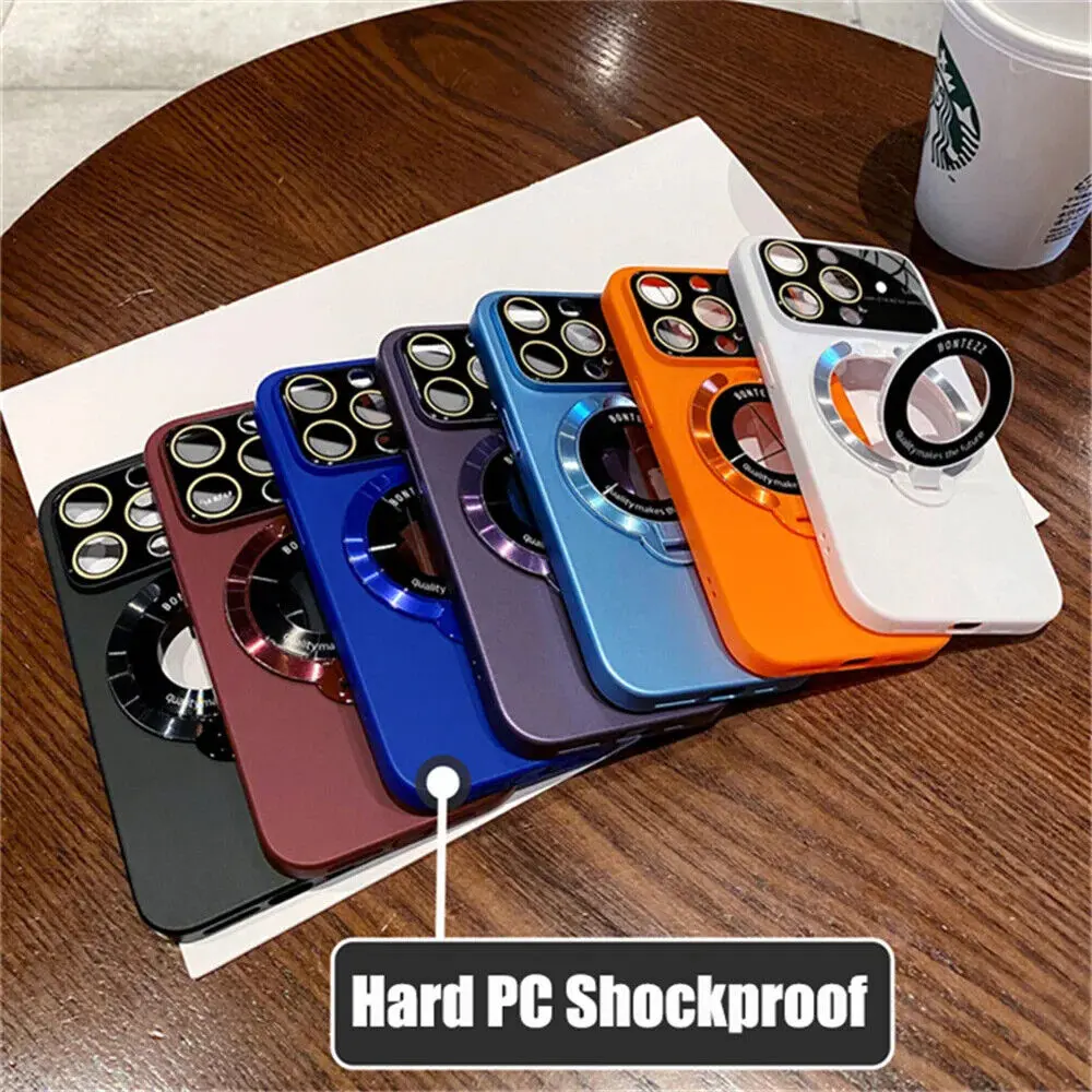 Kickstand Case for iPhone 12 13 14 15 16 17 Pro Max Case, Large Viewport Design, Hard PC Built-in Luxury Camera Lens Protector Full Protection Phone Cover with Magsafe for Women Girls Boy Men