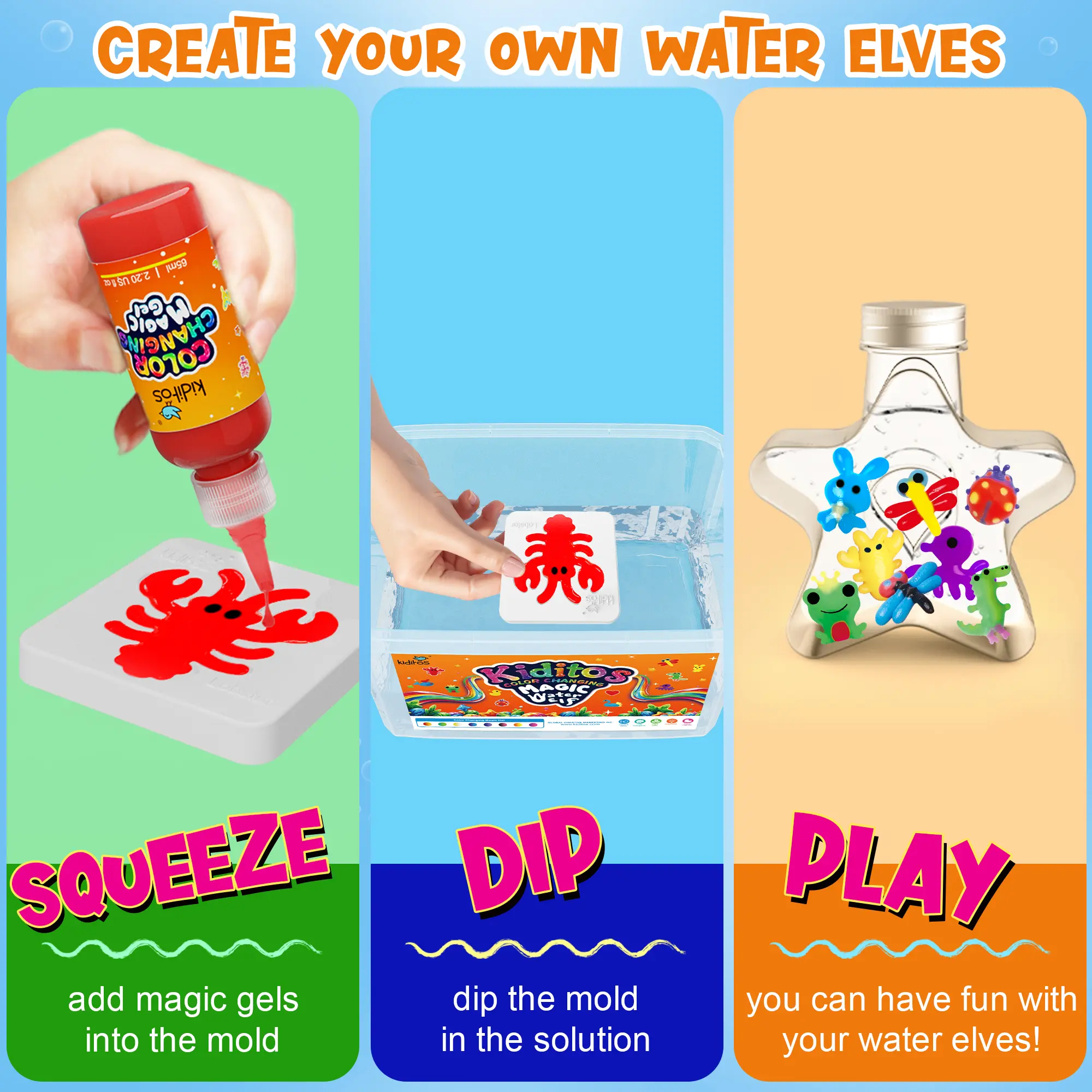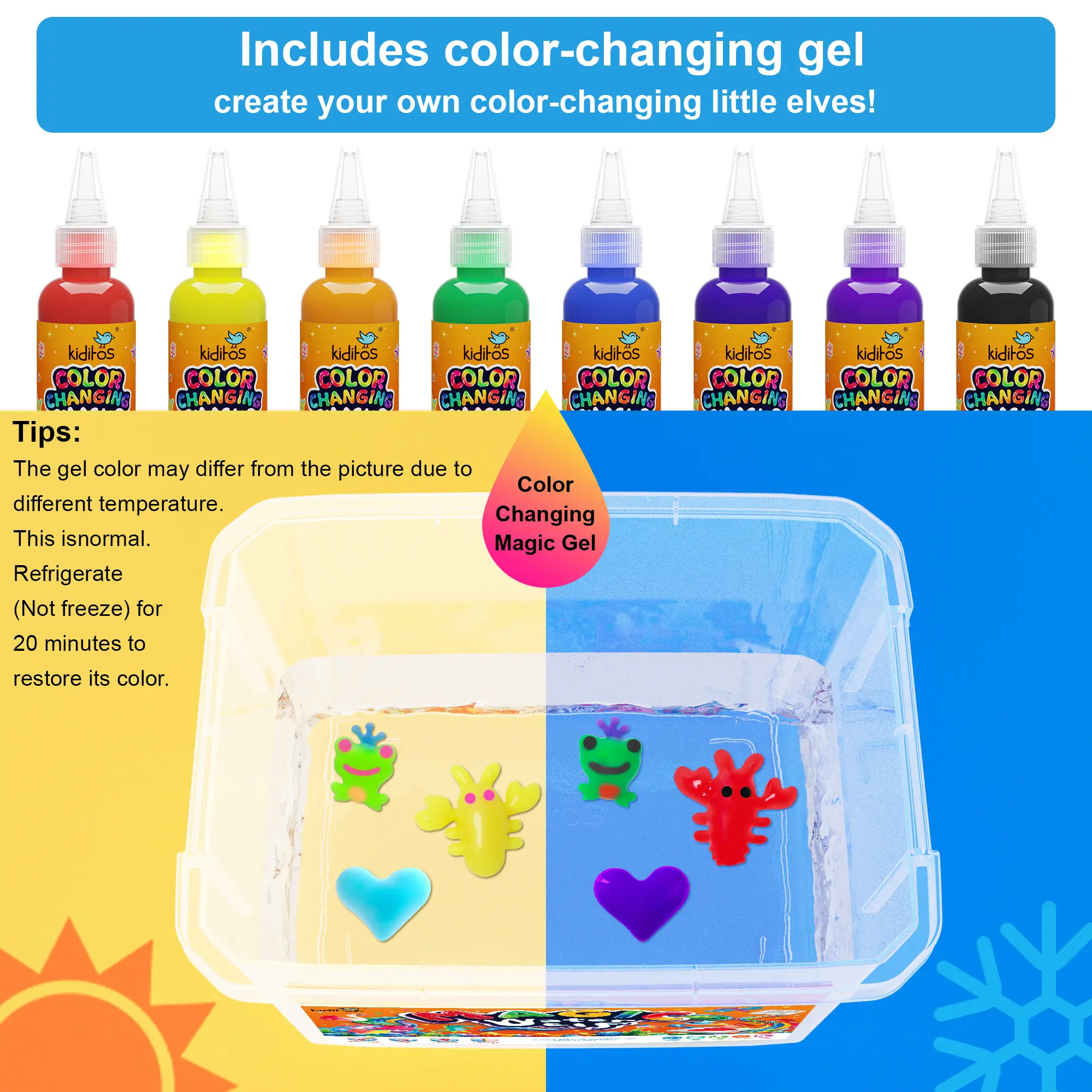 ·Watch the Magic Happen: This magic water elf toy kit features color-changing gel that transforms in cold and warm water. Dive into a world of interactive creative play and experience the wonder of color transformation together!