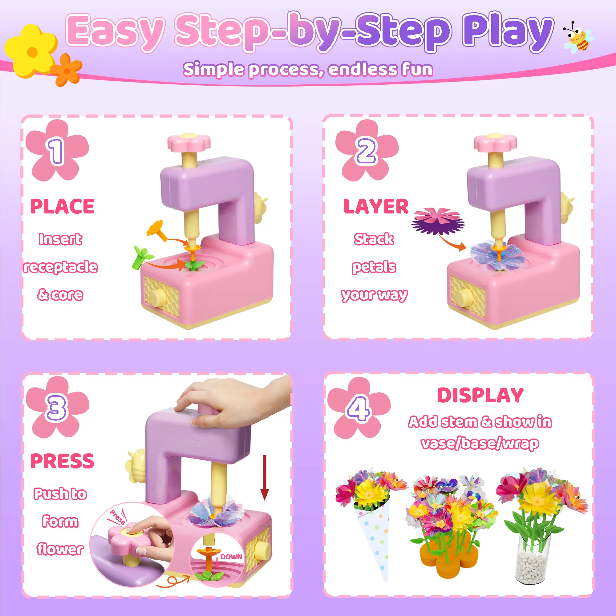 ·The Great Gift for Kids: Our flower bouquet toy combines fun with learning, creating joyful moments for little ones. Whether as a Christmas Gift for Kids, a birthday gift for girls, a holiday toy, or party favors for kids—our flower maker kit is the ultimate gift choice.